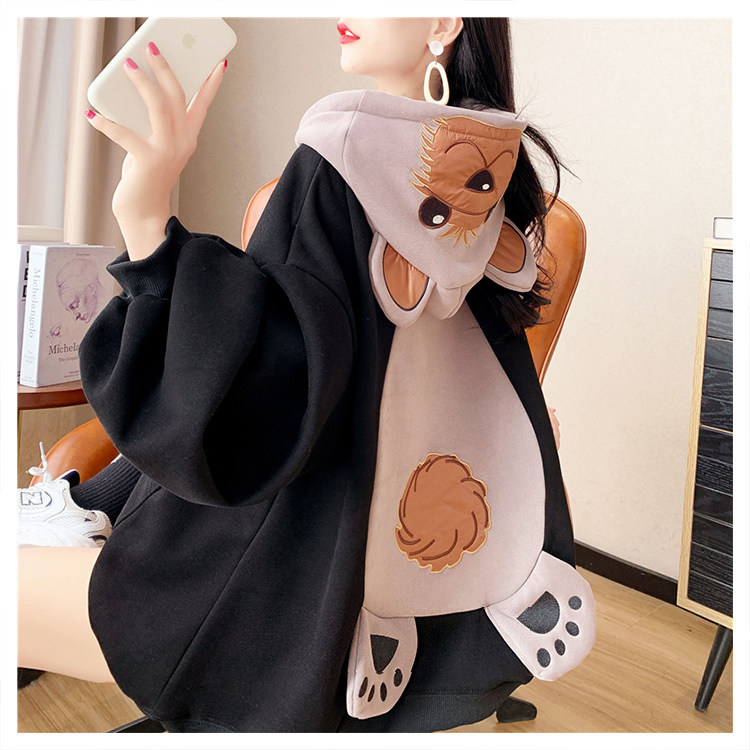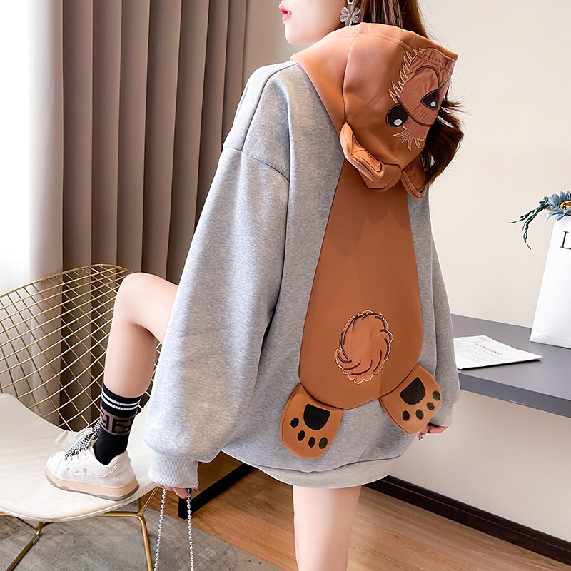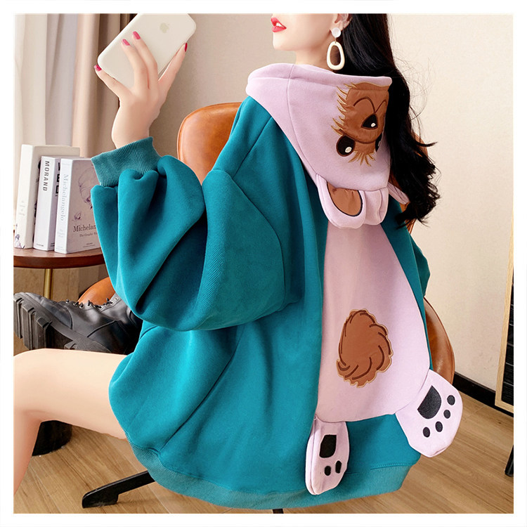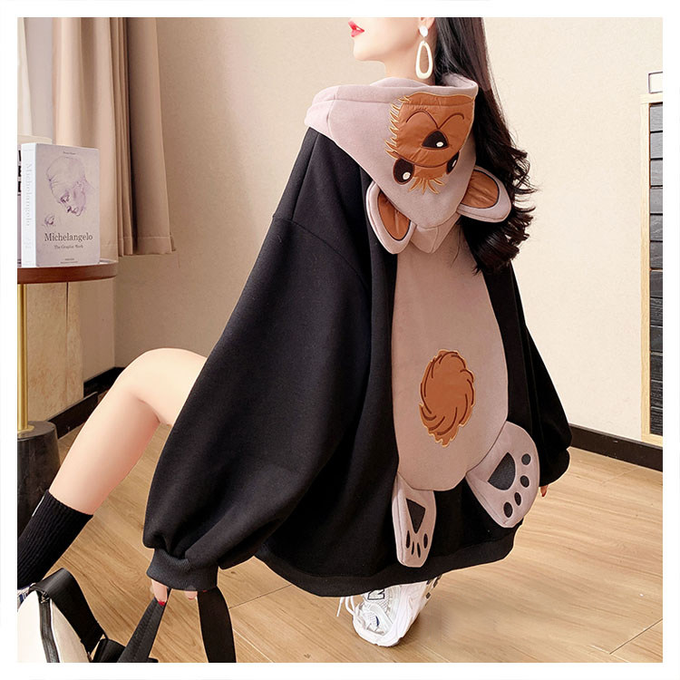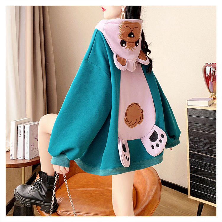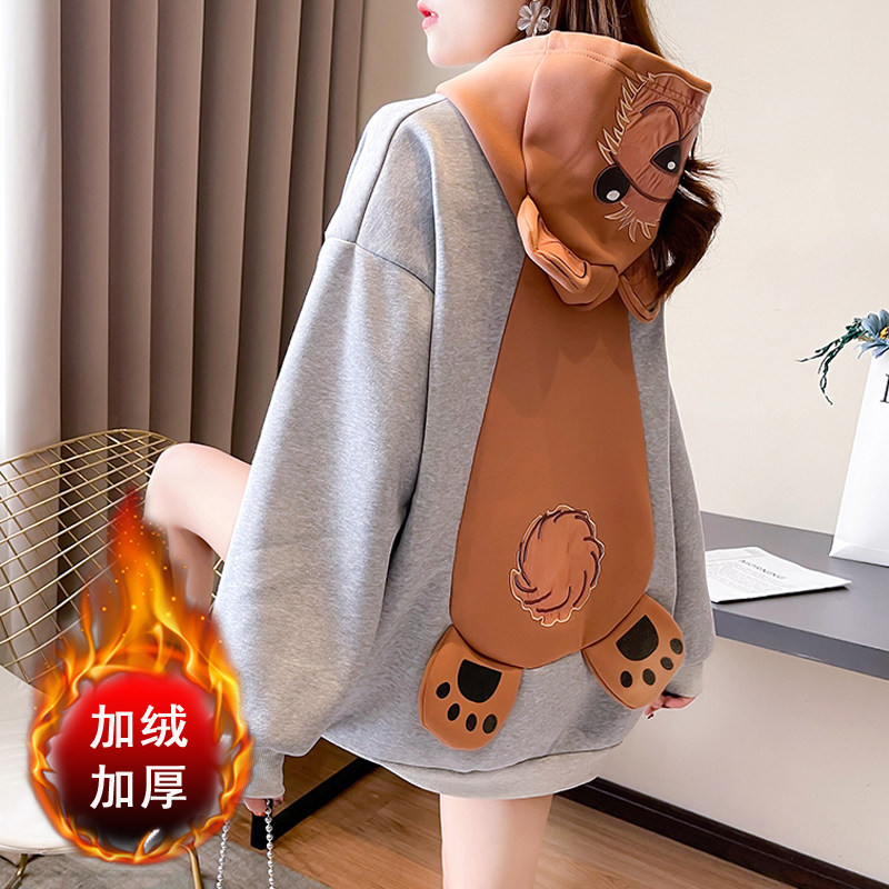 Демисезонная толстовка с капюшоном, утепленные очень большие джинсы с начесом, куртка, с медвежатами, в корейском стиле, большой размер