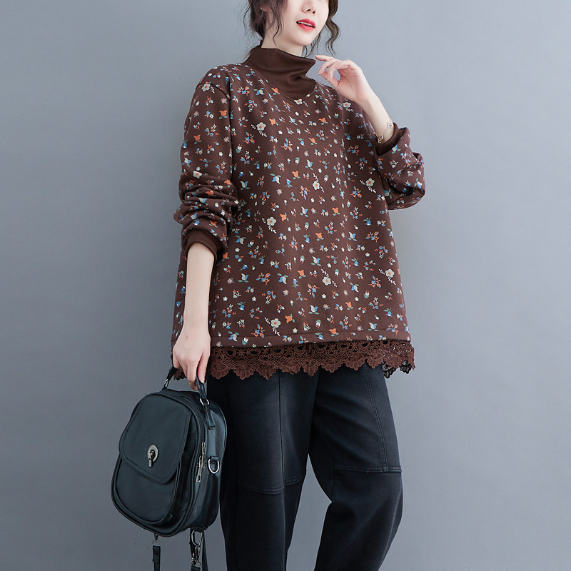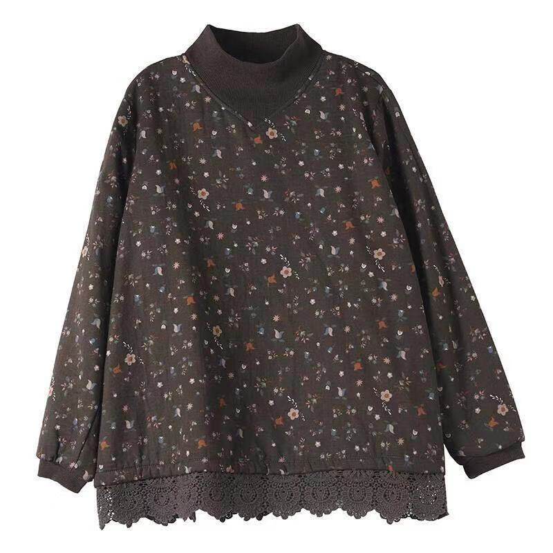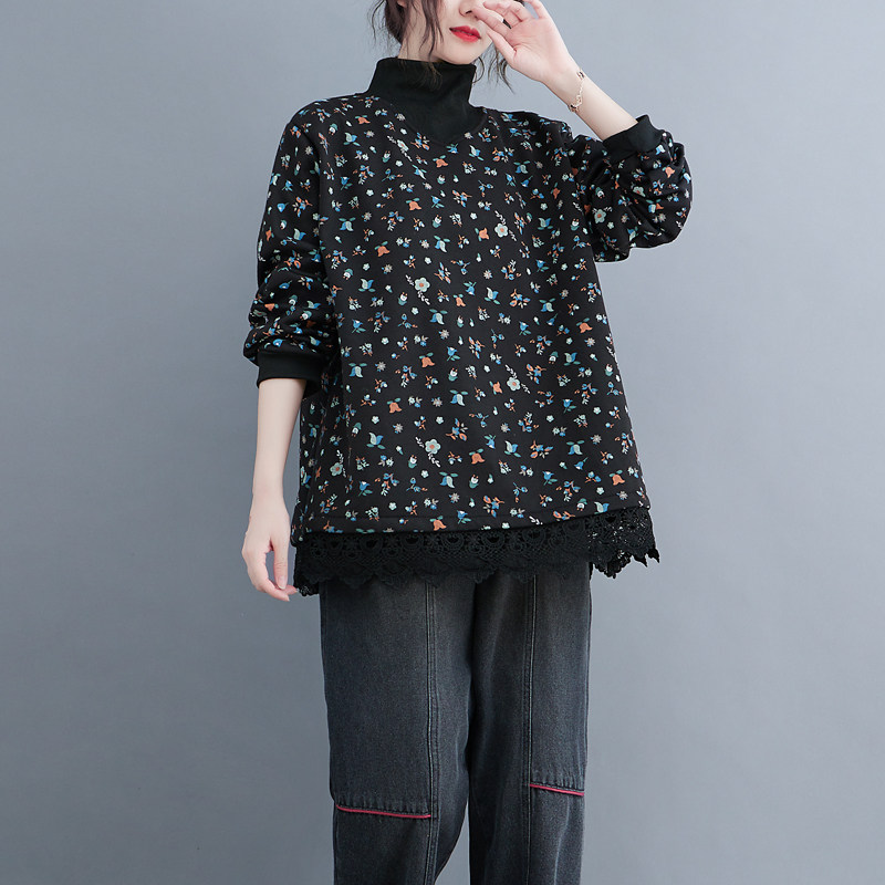 Этническая осенняя демисезонная кружевная базовая приятная телу утепленная толстовка, этнический стиль, в корейском стиле, высокий воротник