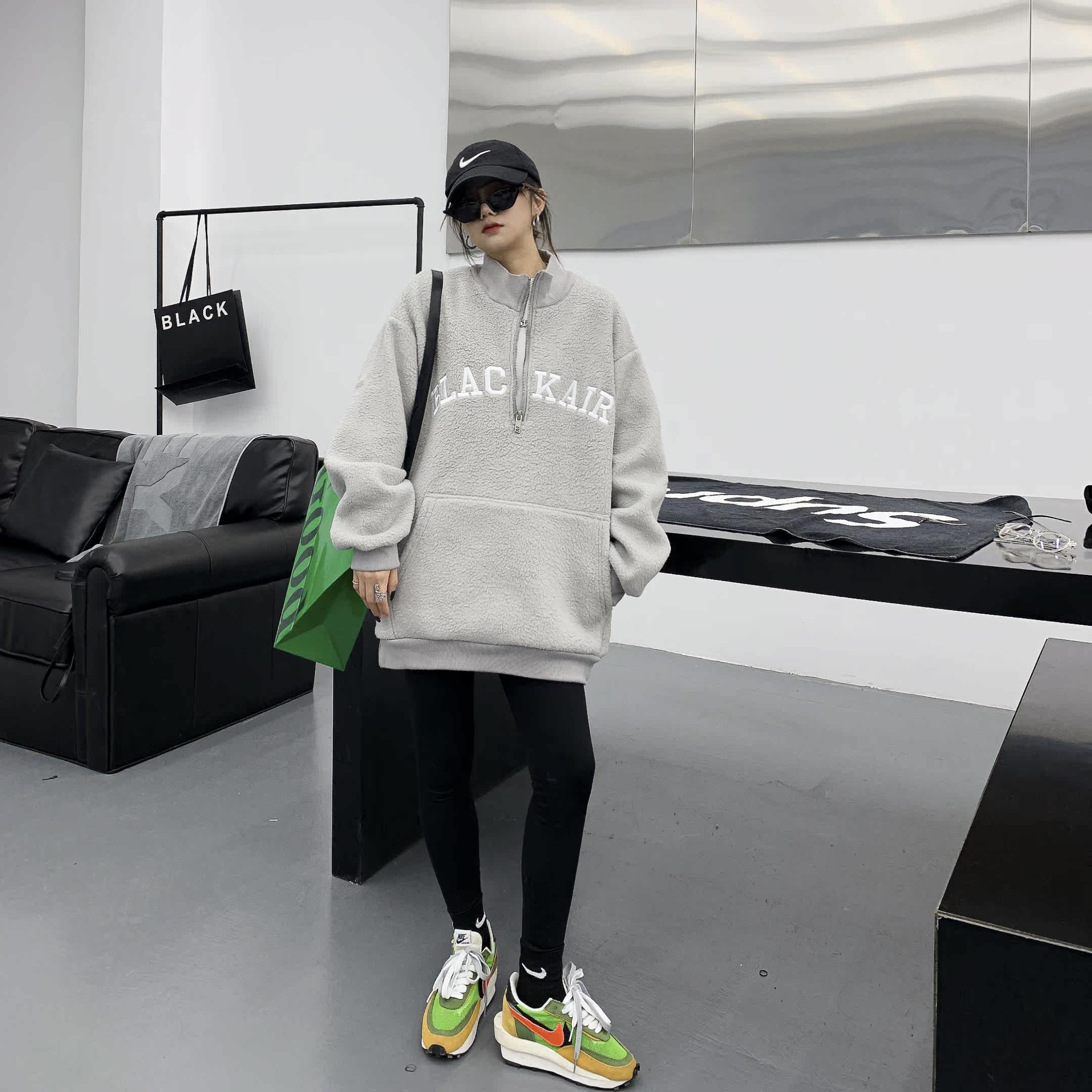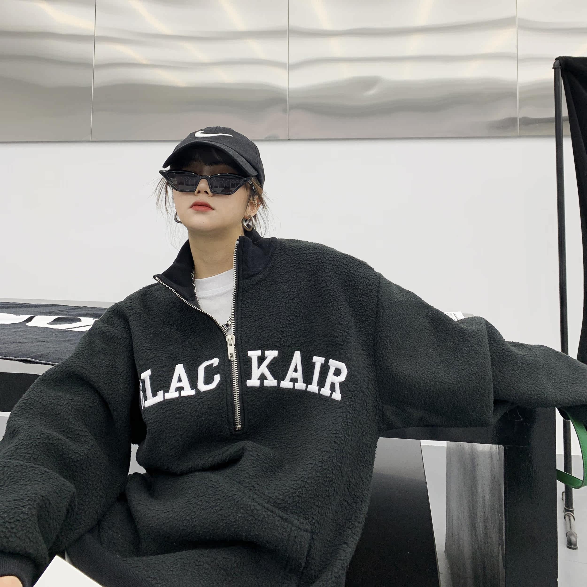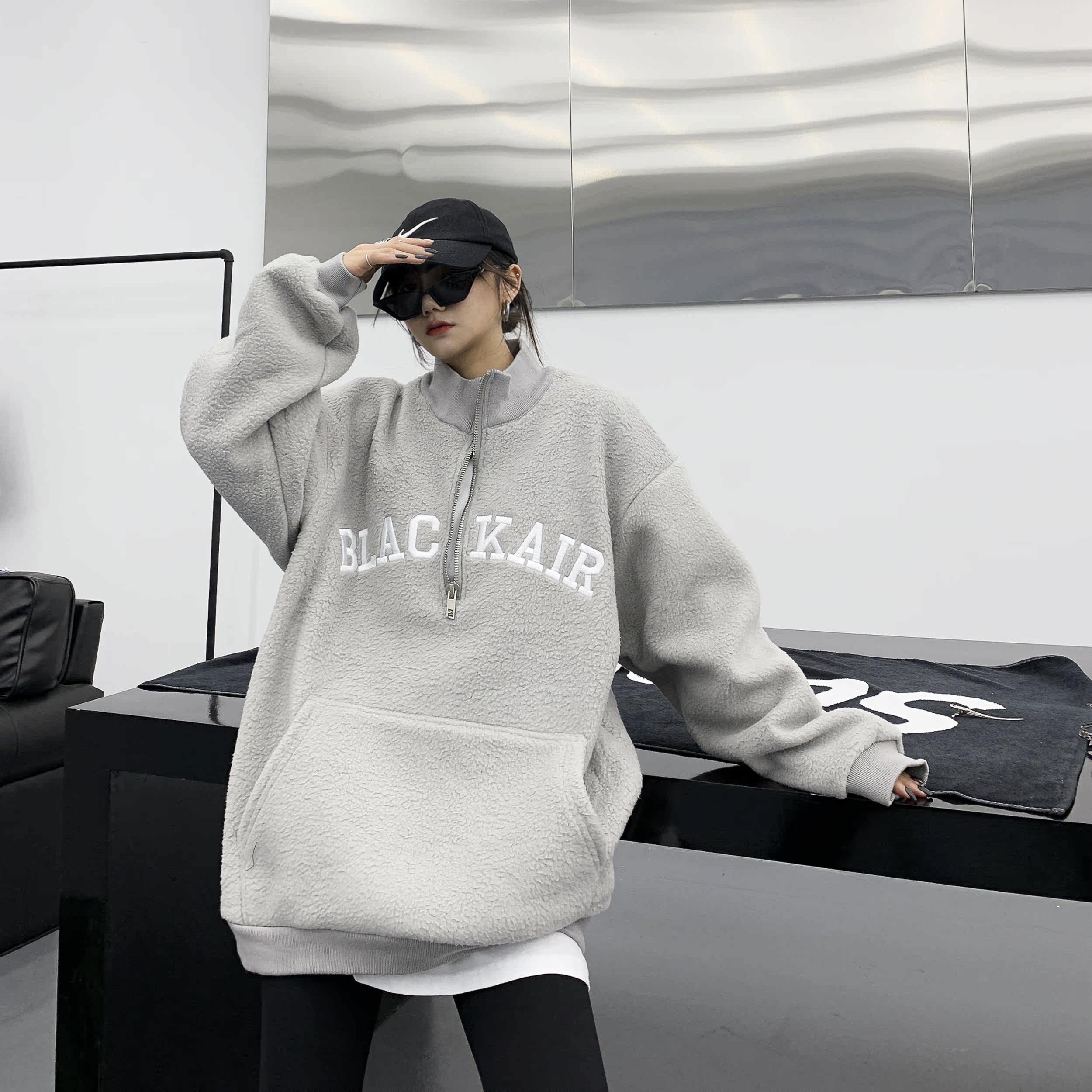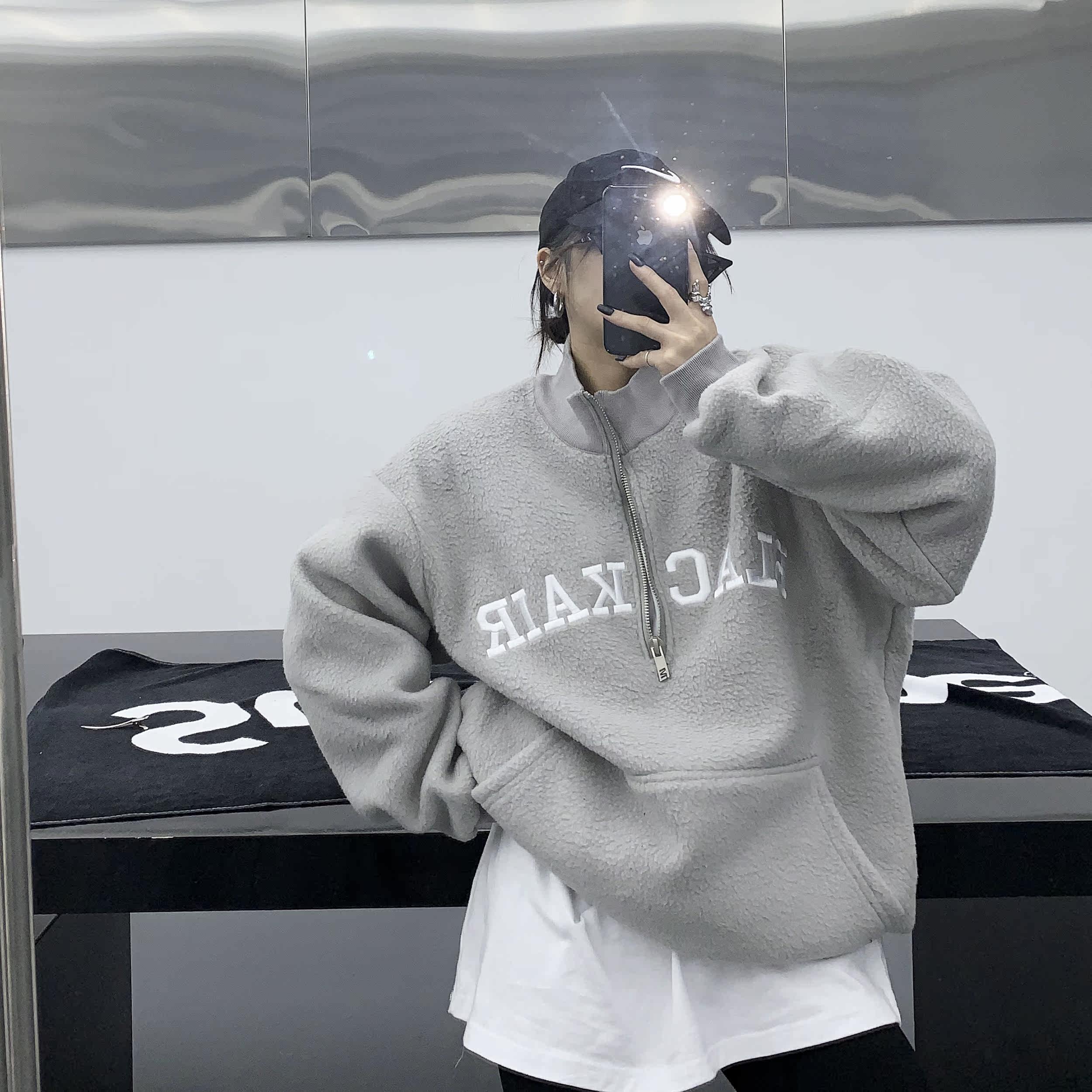 Tide, зимняя утепленная куртка, флисовая толстовка, в американском стиле, оверсайз, свободный крой, с вышивкой