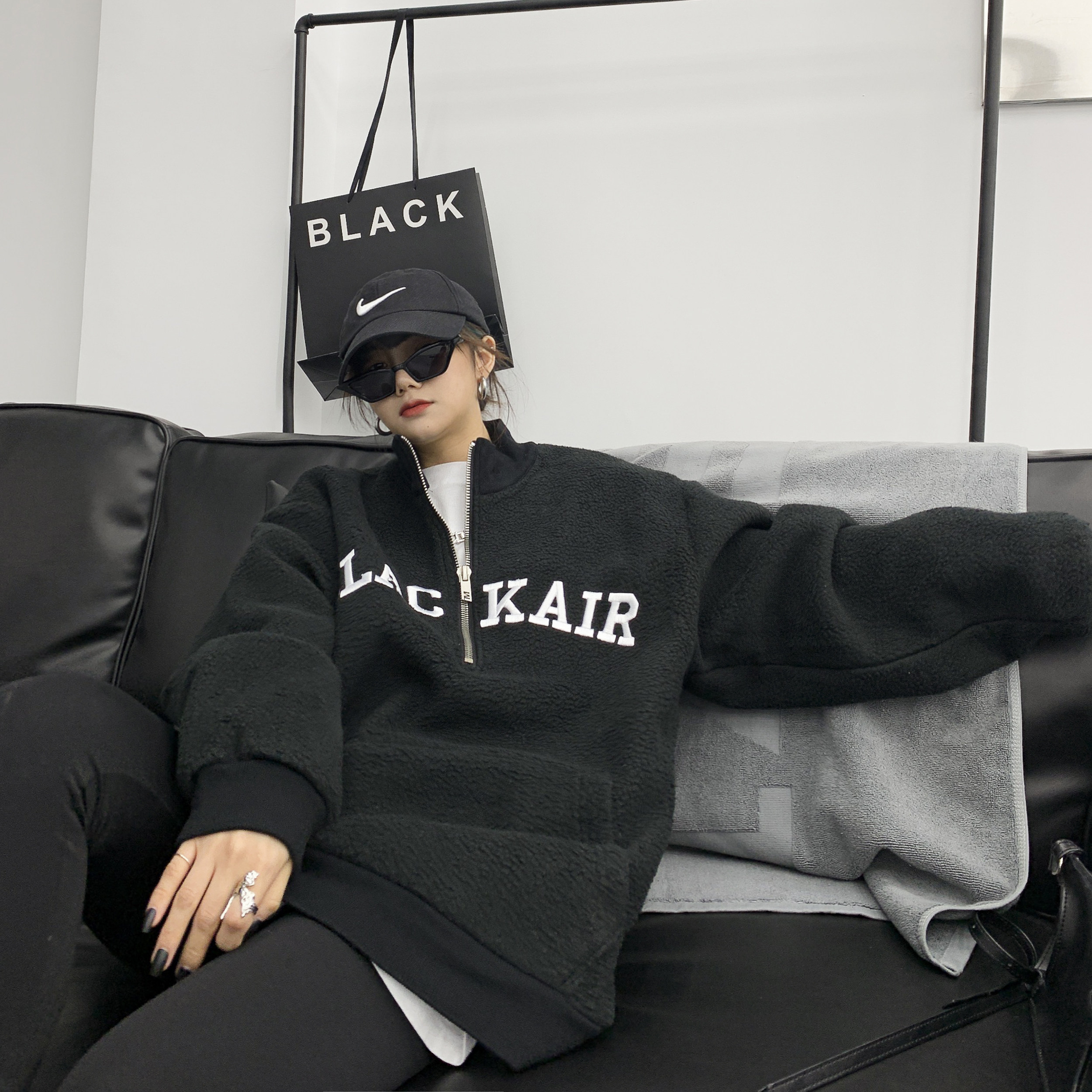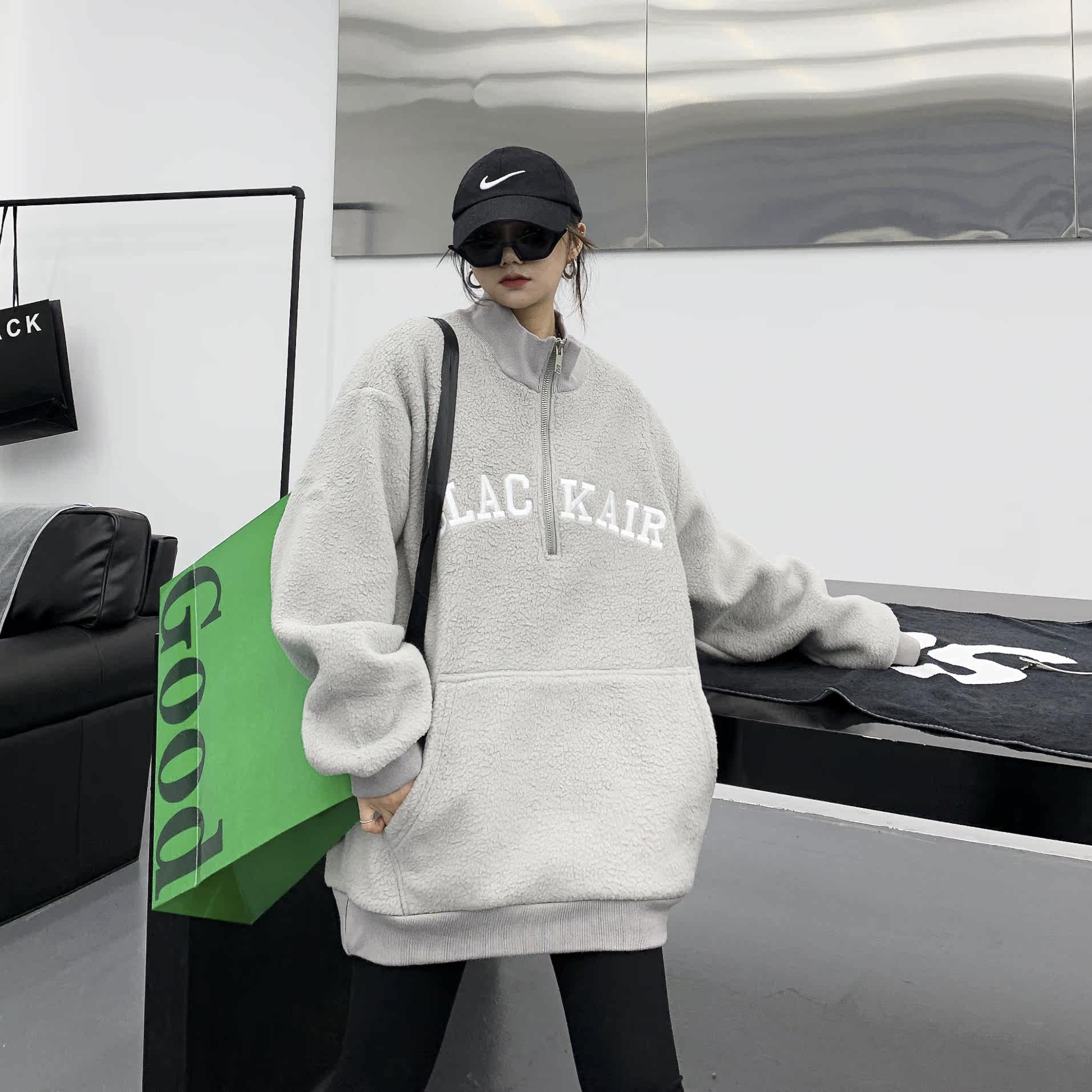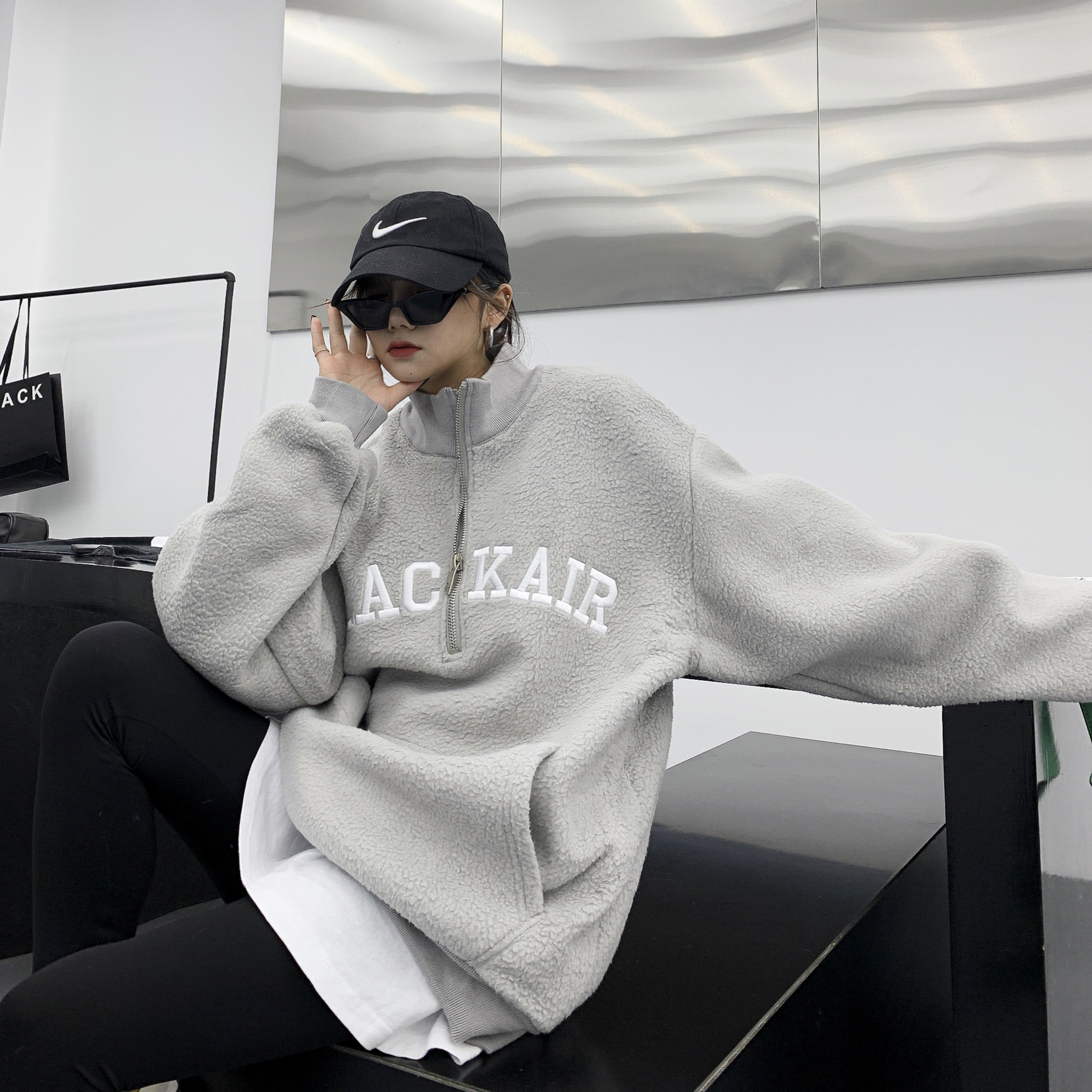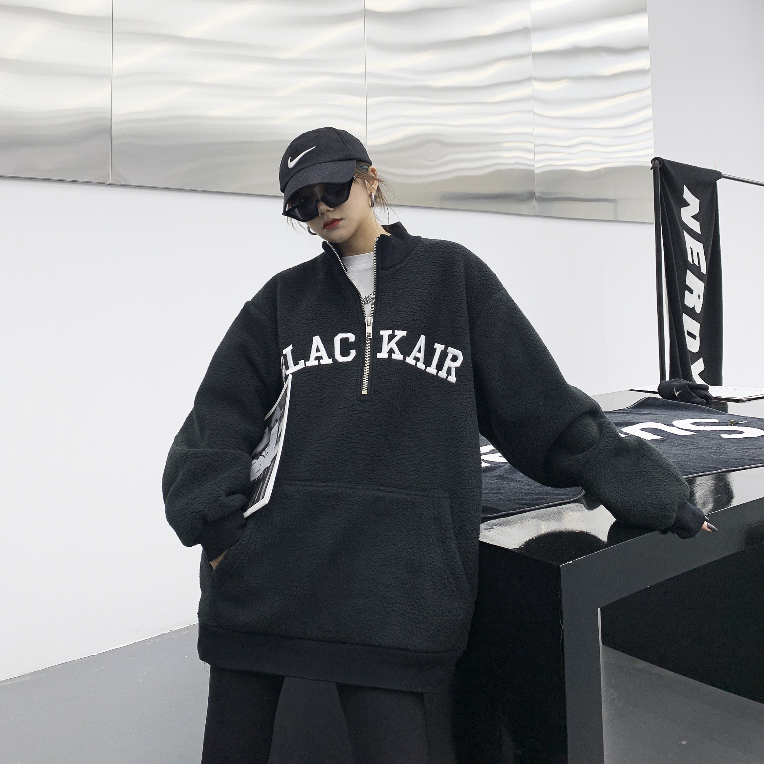 Tide, зимняя утепленная куртка, флисовая толстовка, в американском стиле, оверсайз, свободный крой, с вышивкой