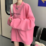 Tide, розовый демисезонный утепленный свитшот с круглым воротником, в корейском стиле, свободный крой