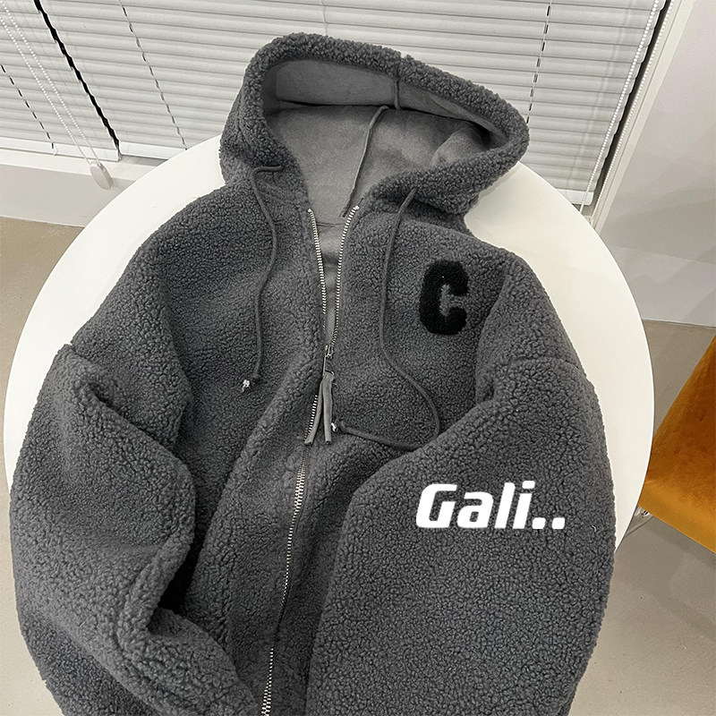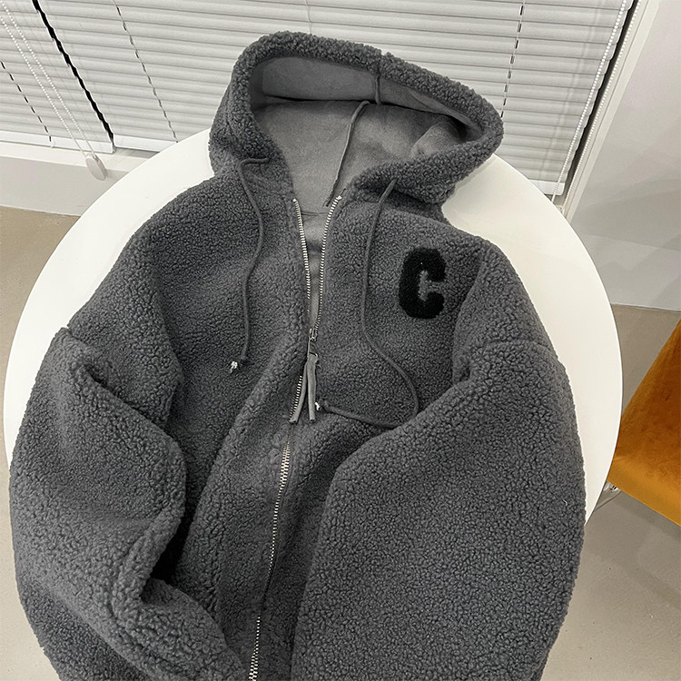 Толстовка с капюшоном, зимний пластырь, бархатная куртка, кардиган, с вышивкой, увеличенная толщина, в корейском стиле, 2023, свободный крой