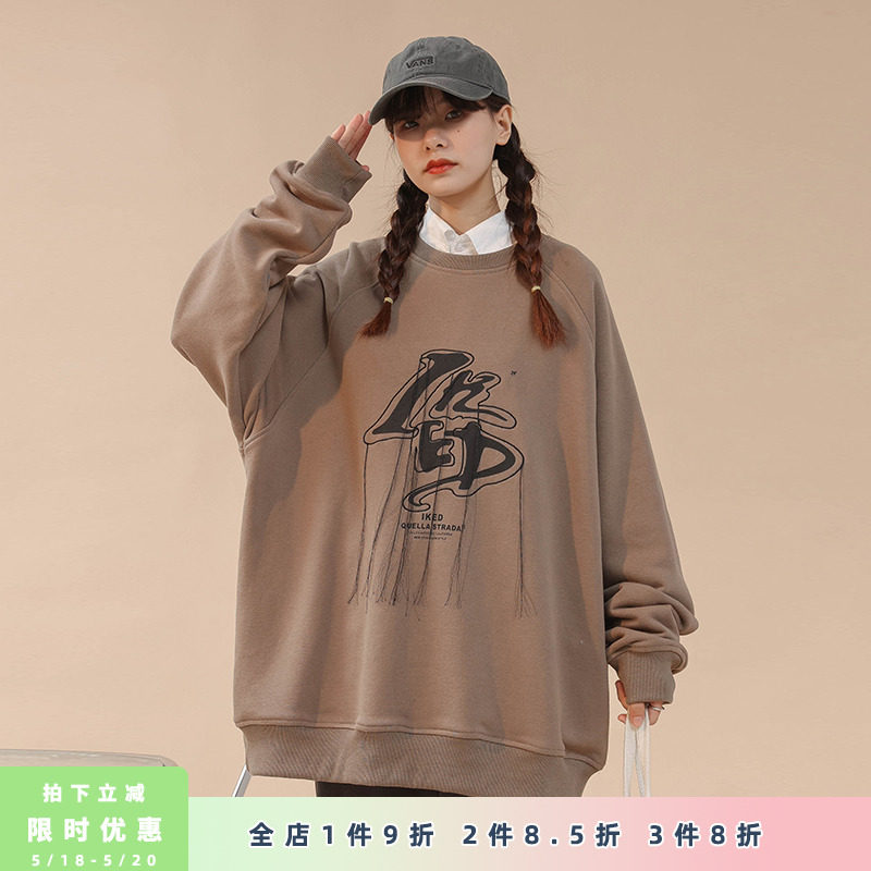 Толстовка с круглым воротником в стиле хип-хоп, весенняя брендовая куртка, с вышивкой, 2022, тренд сезона