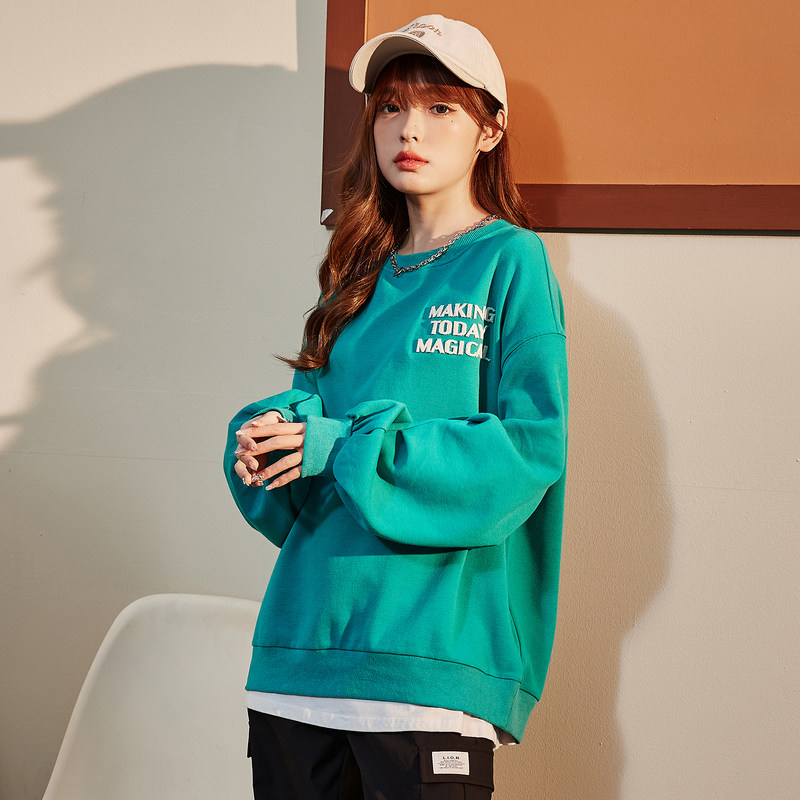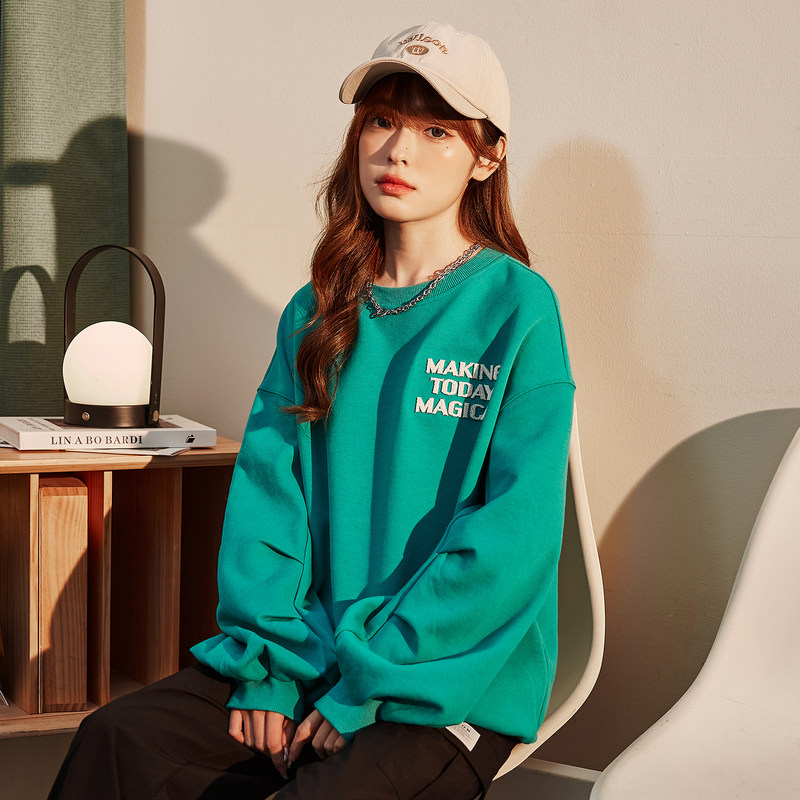 Свитшот с круглым воротником, дизайнерская зеленая толстовка, тренд сезона