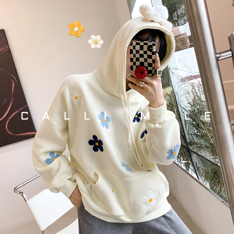 Бархатная дизайнерская демисезонная утепленная толстовка с капюшоном для отдыха, в цветочек, тренд сезона