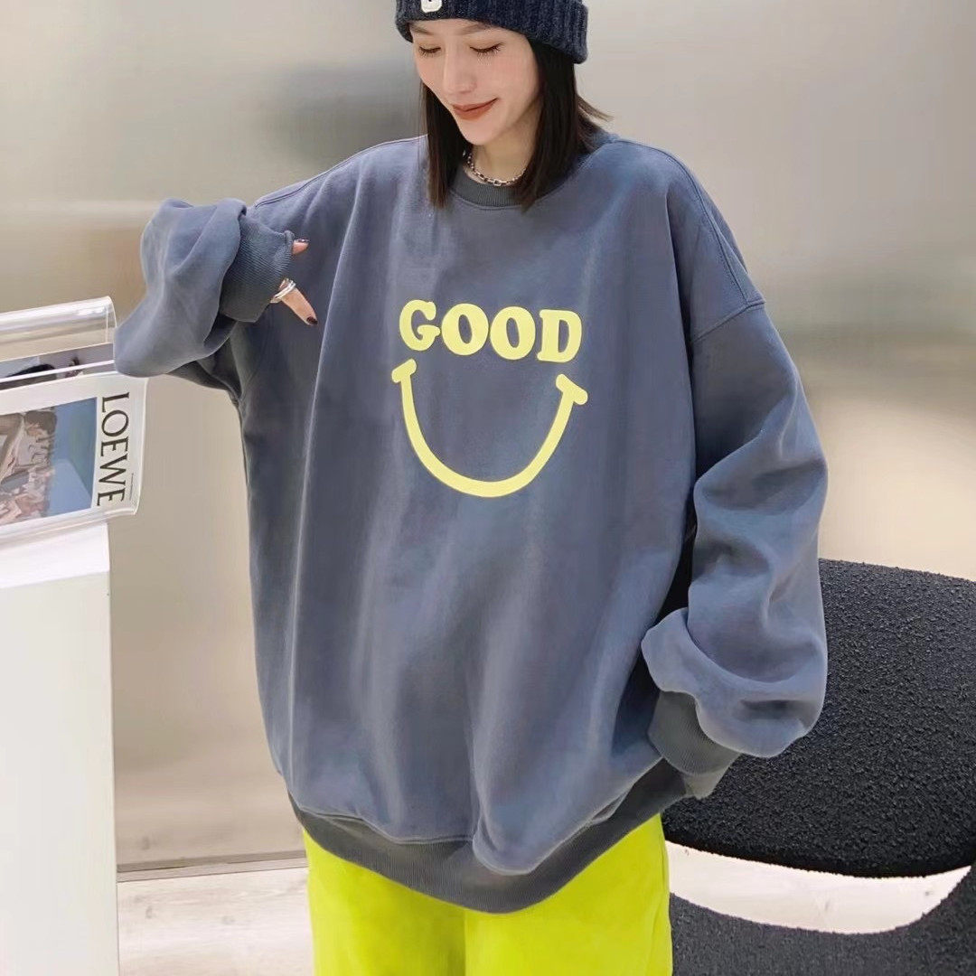 Южнокорейский товар, утепленная толстовка, европейский стиль, коллекция 2021, свободный крой