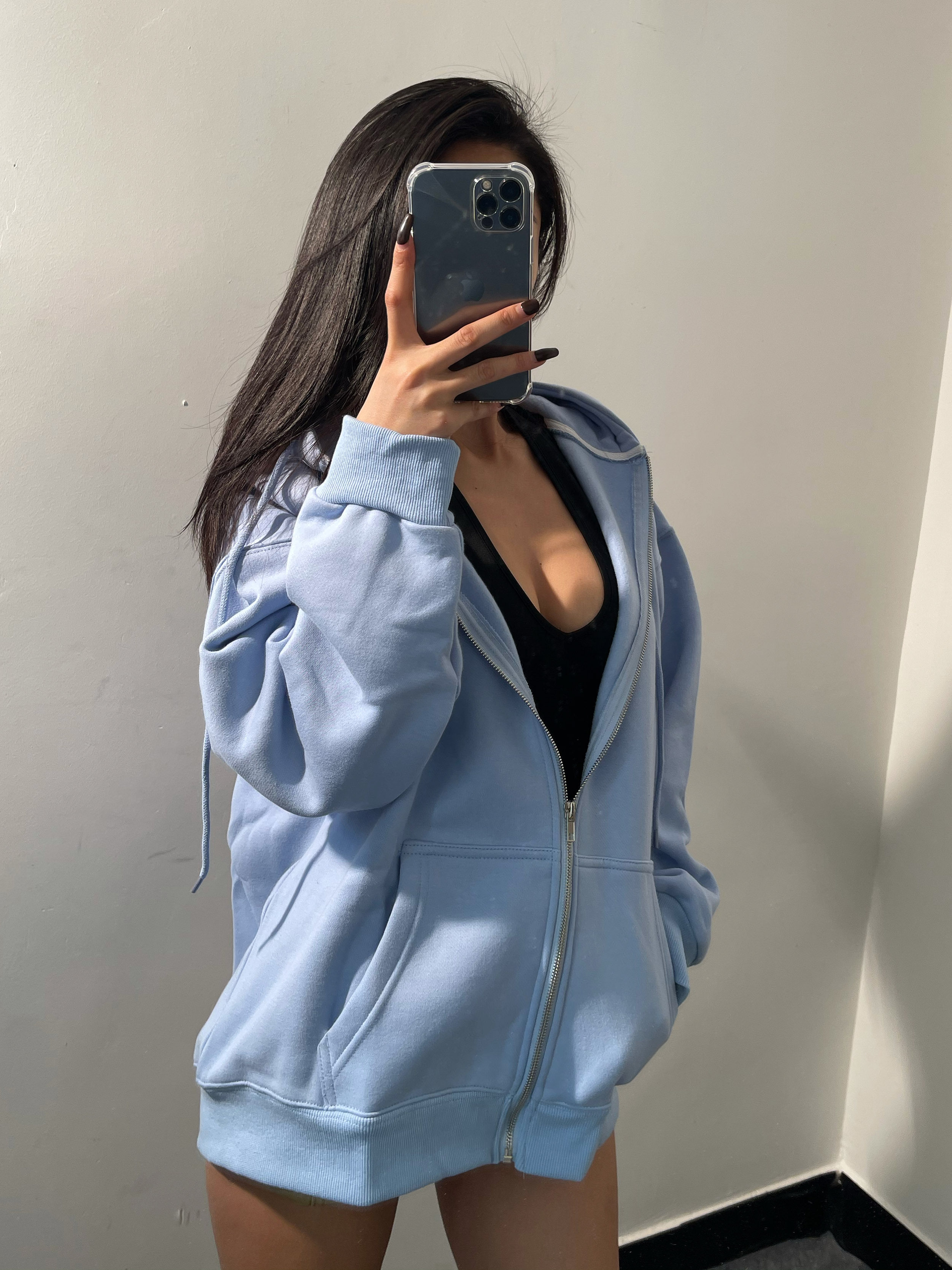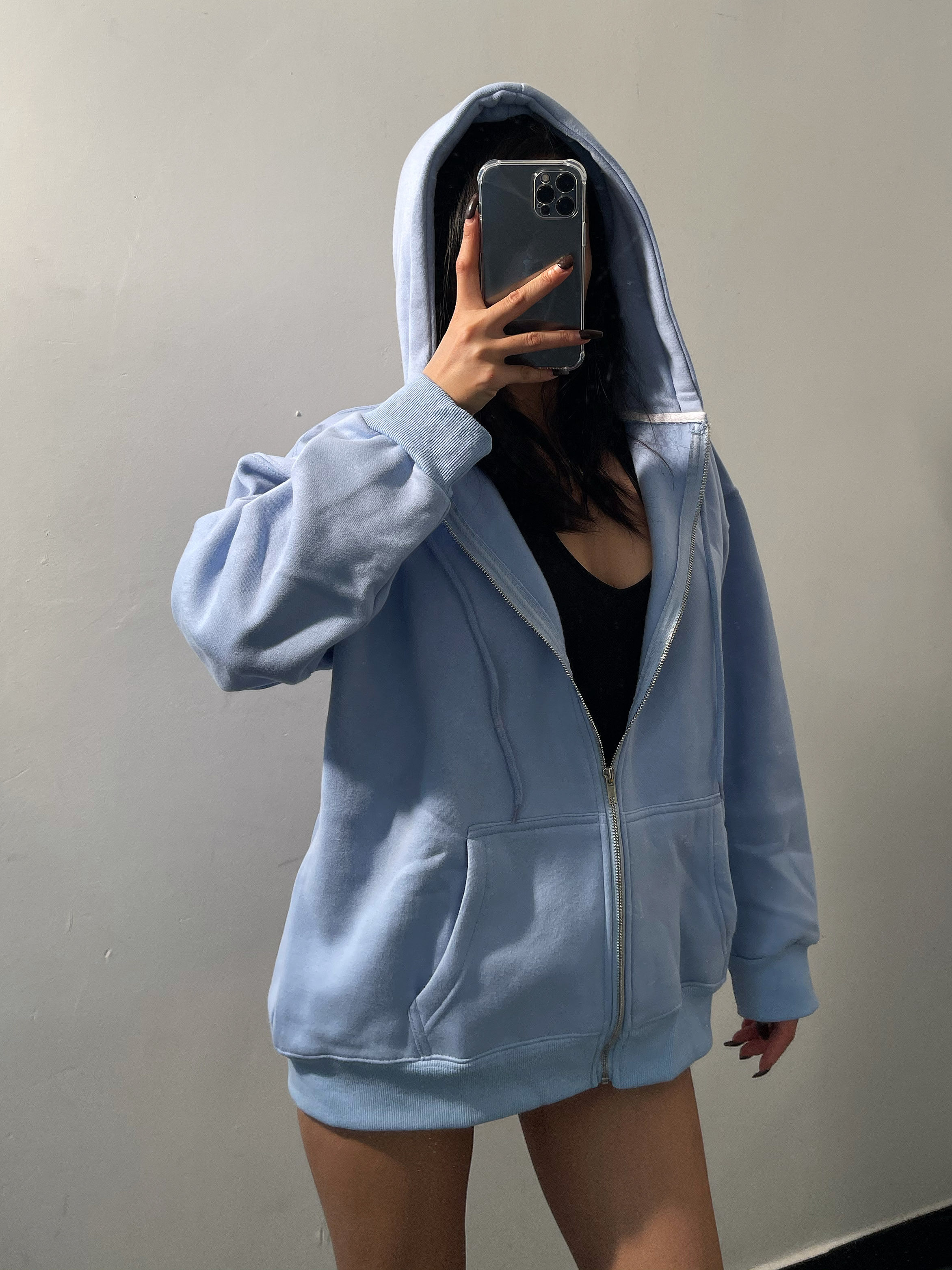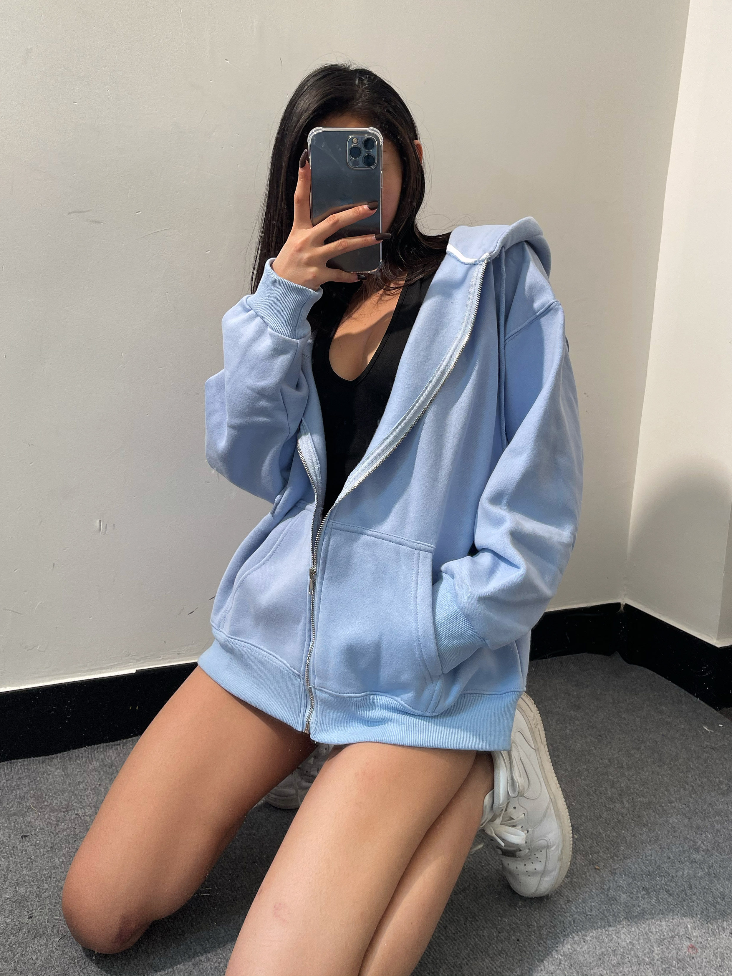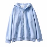 Бархатный удерживающий тепло однотонный белый лонгслив с капюшоном с молнией, толстовка, оверсайз