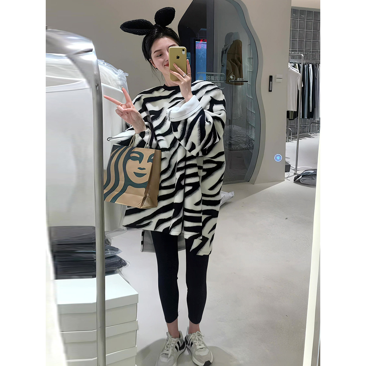 Демисезонная небольшая зебра, дизайнерская универсальная модная толстовка с круглым воротником, тренд сезона, свободный прямой крой