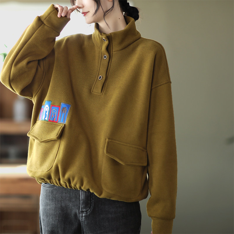 Утепленная трикотажная зимняя толстовка, бархатный пластырь, свободный крой