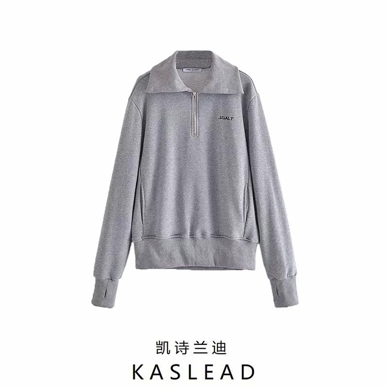 KASLEAD новая женская толстовка с длинными карманами в европейском и американском стиле с большими лацканами и вышивкой на половинной молнии