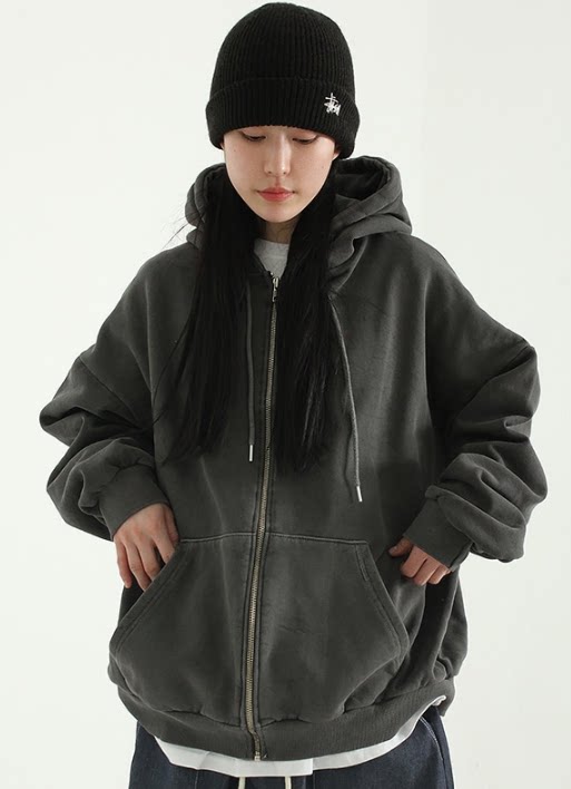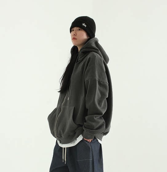 Агент по закупкам Южной Кореи 22A/W Пигментированный хлопковой капюшону для застегивания и использованного капюшона на молнии