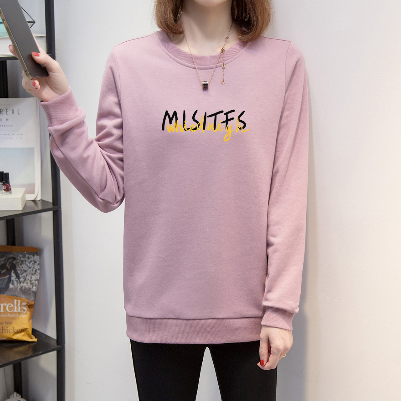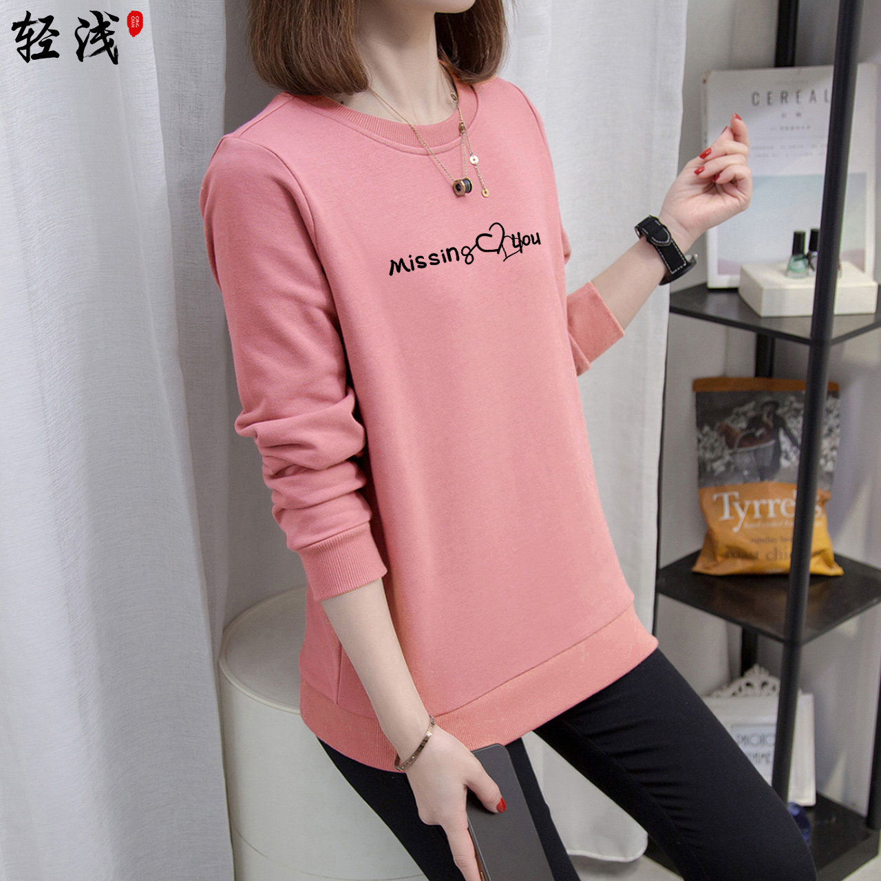 Tide, розовый осенний свитшот с круглым воротником, тонкий базовый лонгслив, коллекция 2022, свободный крой
