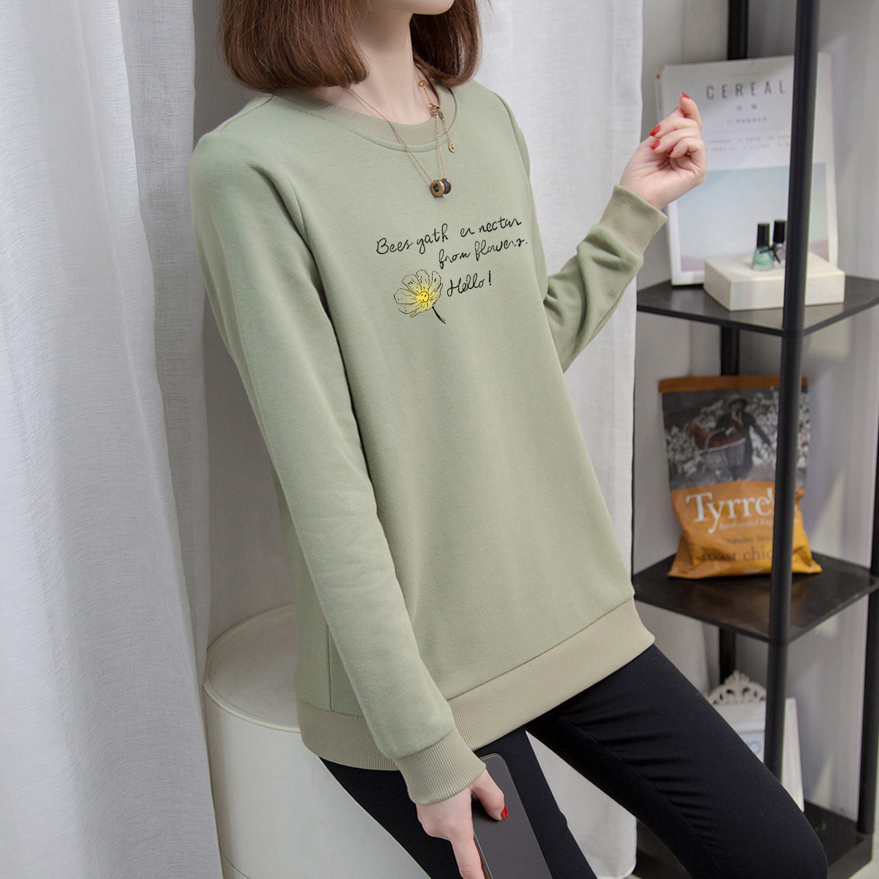 - Matcha Green-486-Yellow Flower пчелы три ряда черных букв