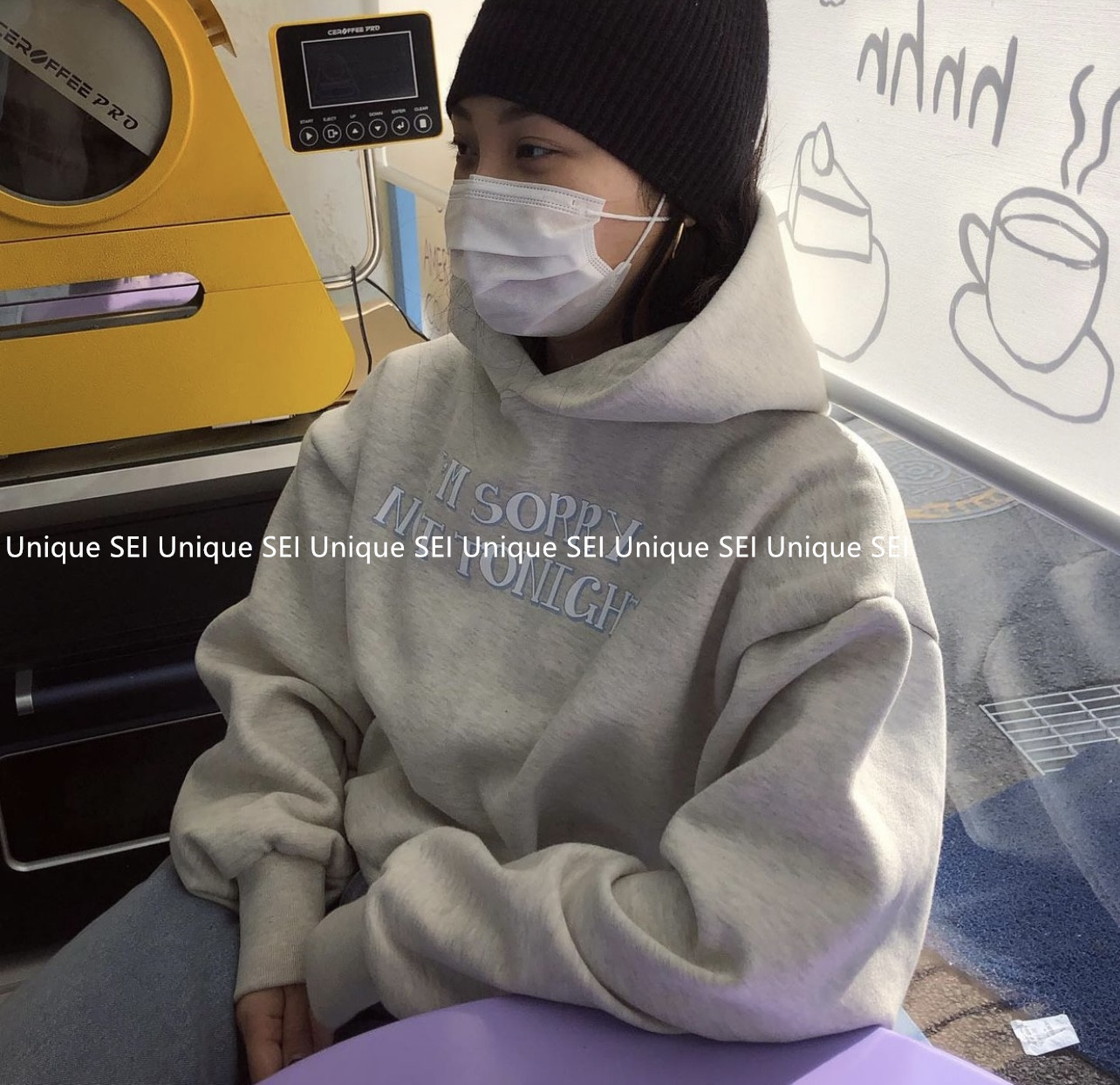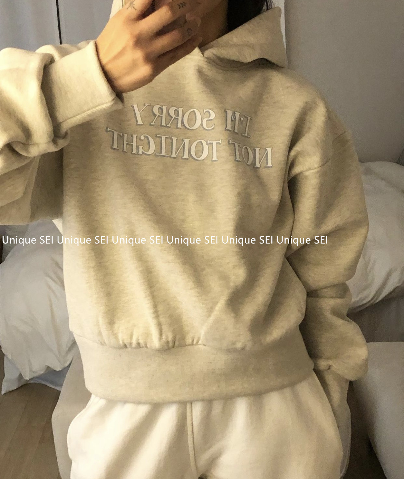 Уникальный Sei Korean Nice Personality Printing Printing Simple Hooded Losative Short Top Top