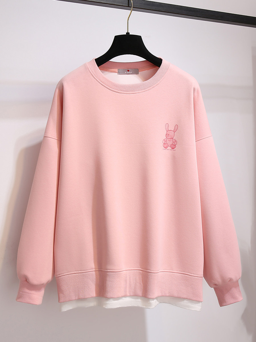 Розовый комплект с круглым воротником, весенняя осенняя толстовка, 2024 года, оверсайз, изысканный стиль, в западном стиле