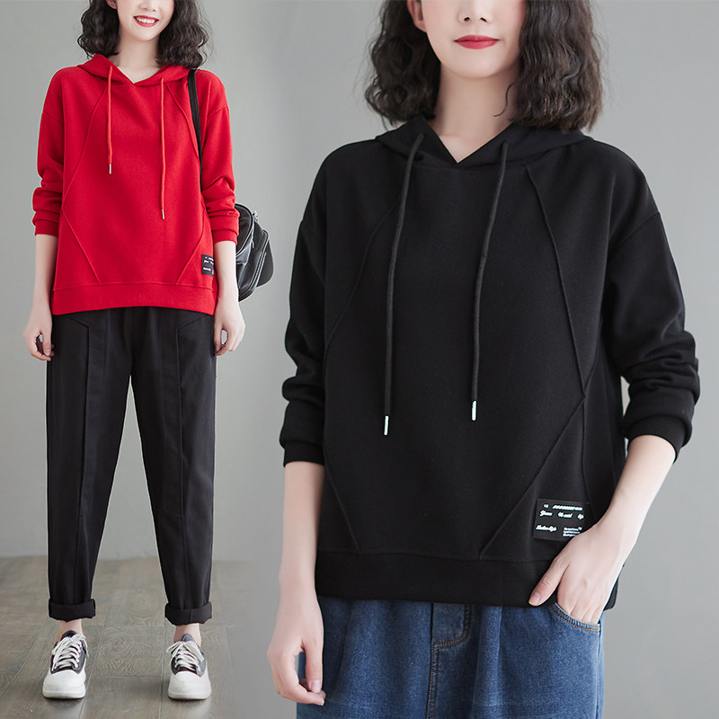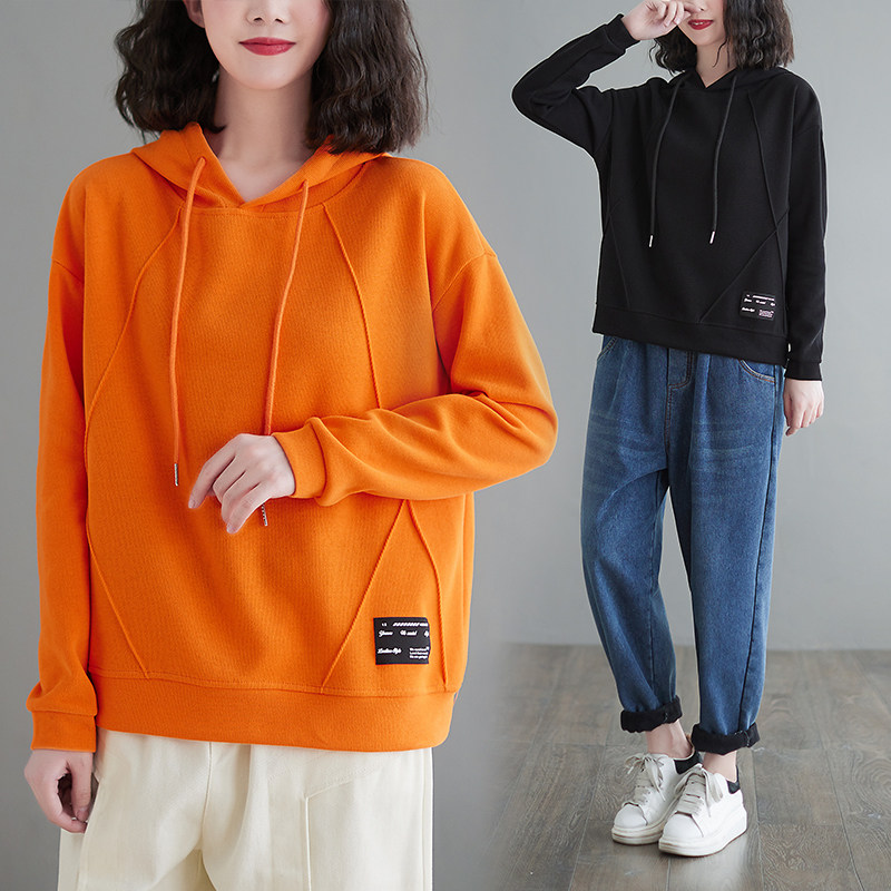 Весенний лонгслив с капюшоном, толстовка, большой размер, в корейском стиле, в западном стиле