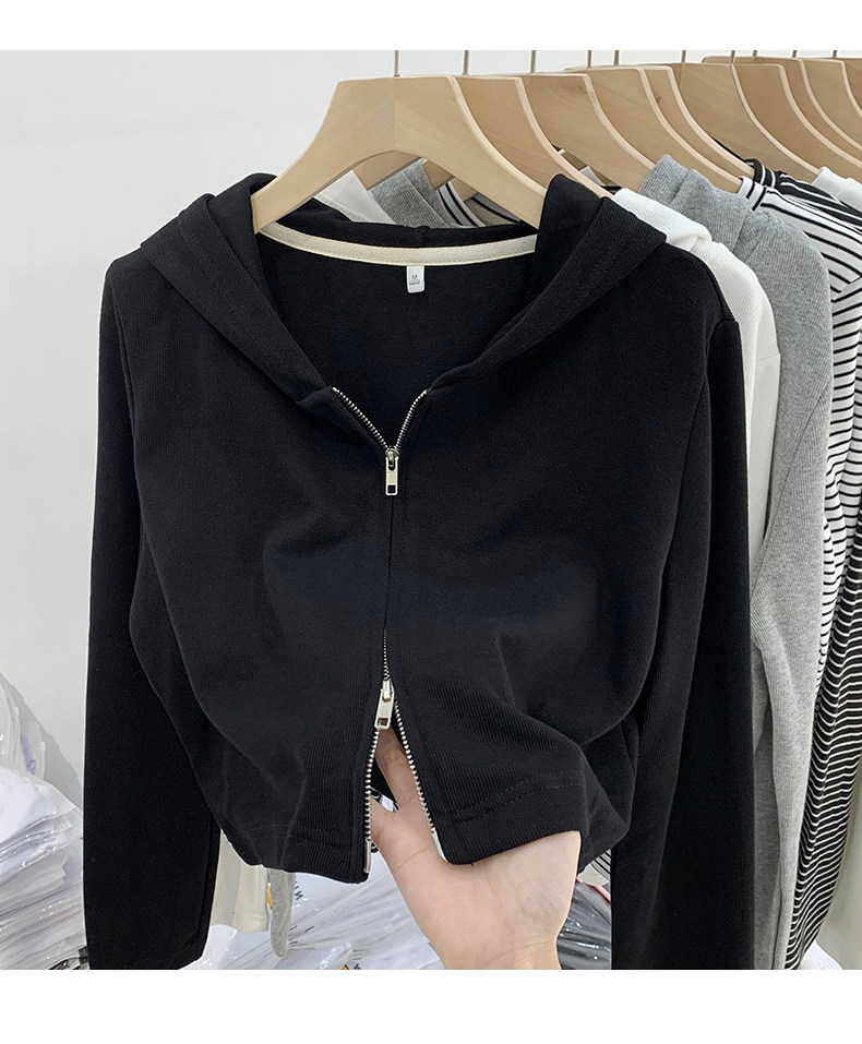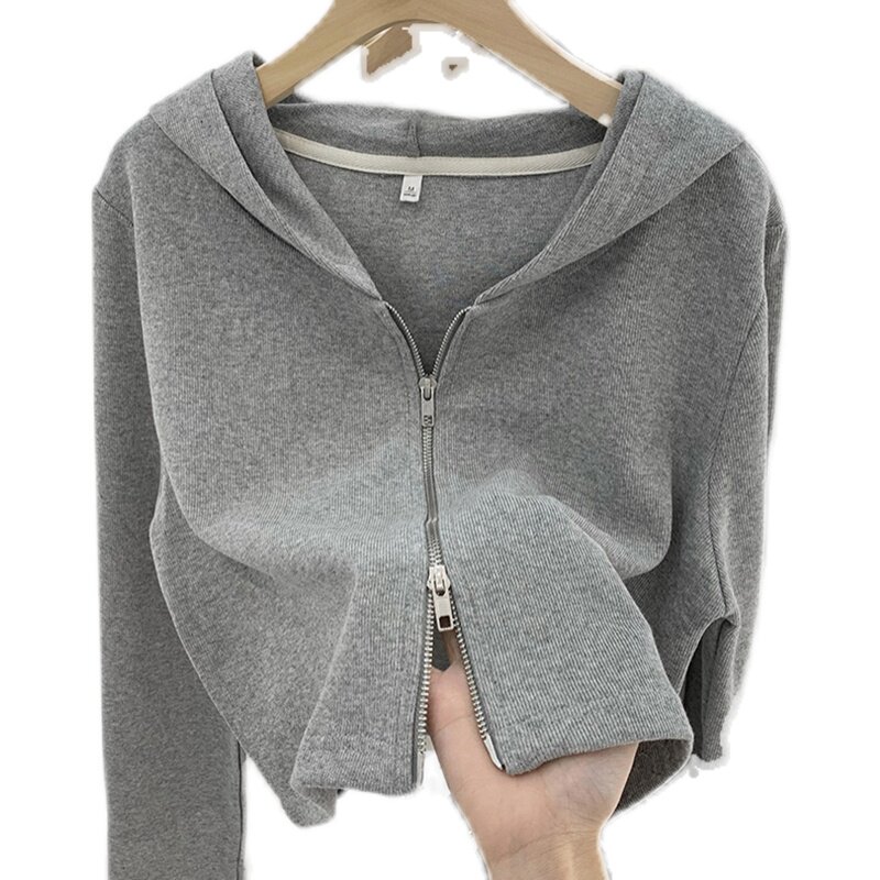 Трикотажный весенний дизайнерский кардиган, демисезонный короткий свитер с капюшоном с молнией, куртка, коллекция 2022, тренд сезона