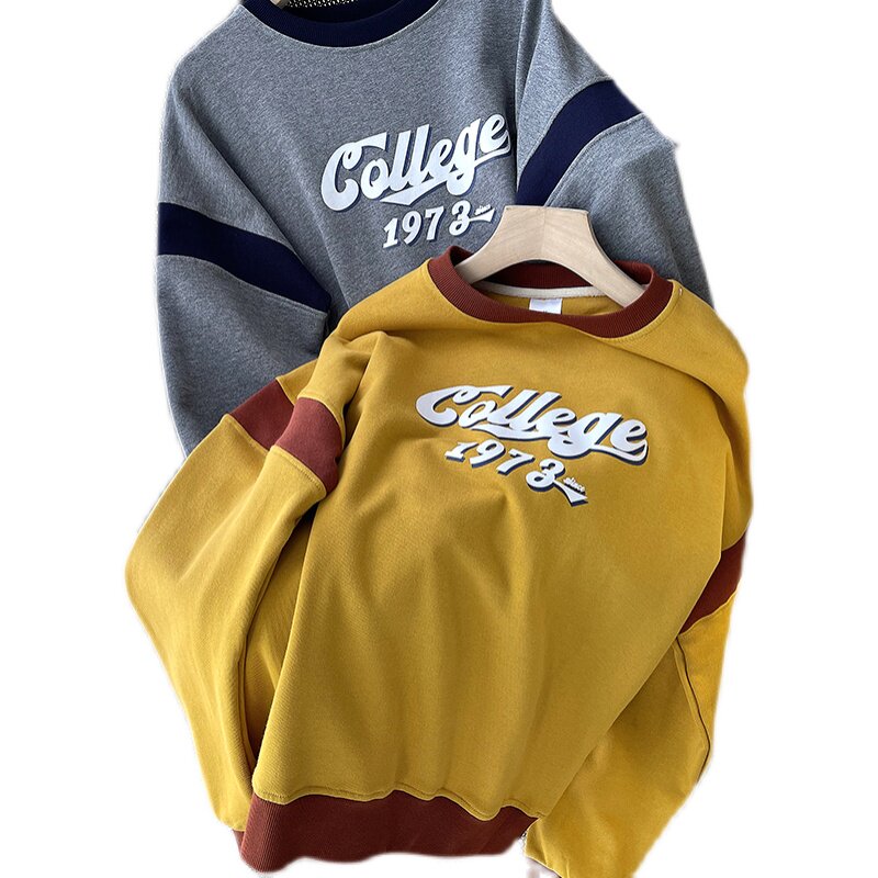 Ретро весенний хлопковый свитшот с круглым воротником для отдыха, коллекция 2022, оверсайз, свободный крой