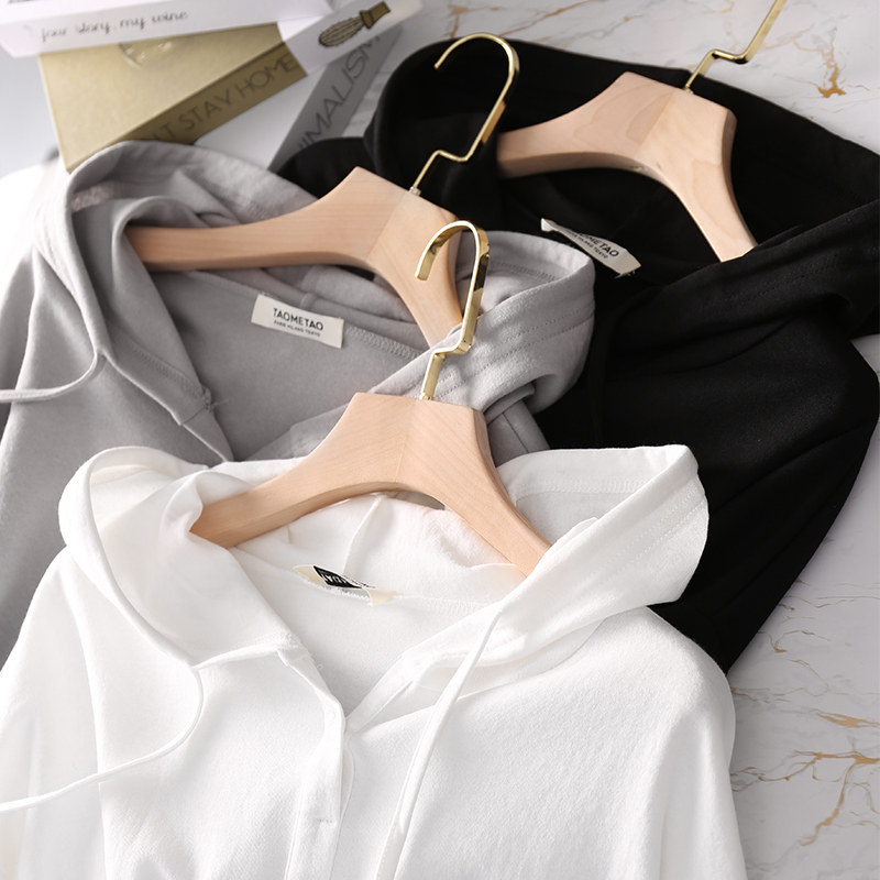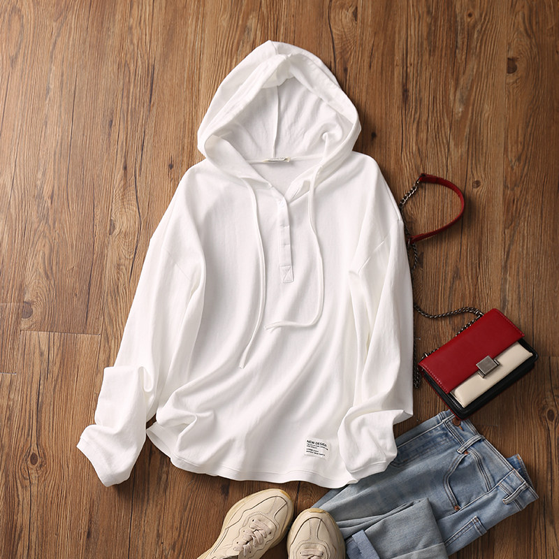 Осенний балахон, белый лонгслив, толстовка с капюшоном, шапка, футболка, свободный крой