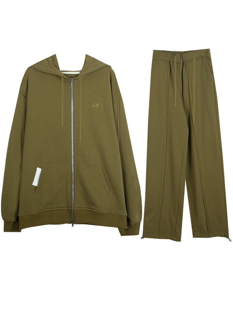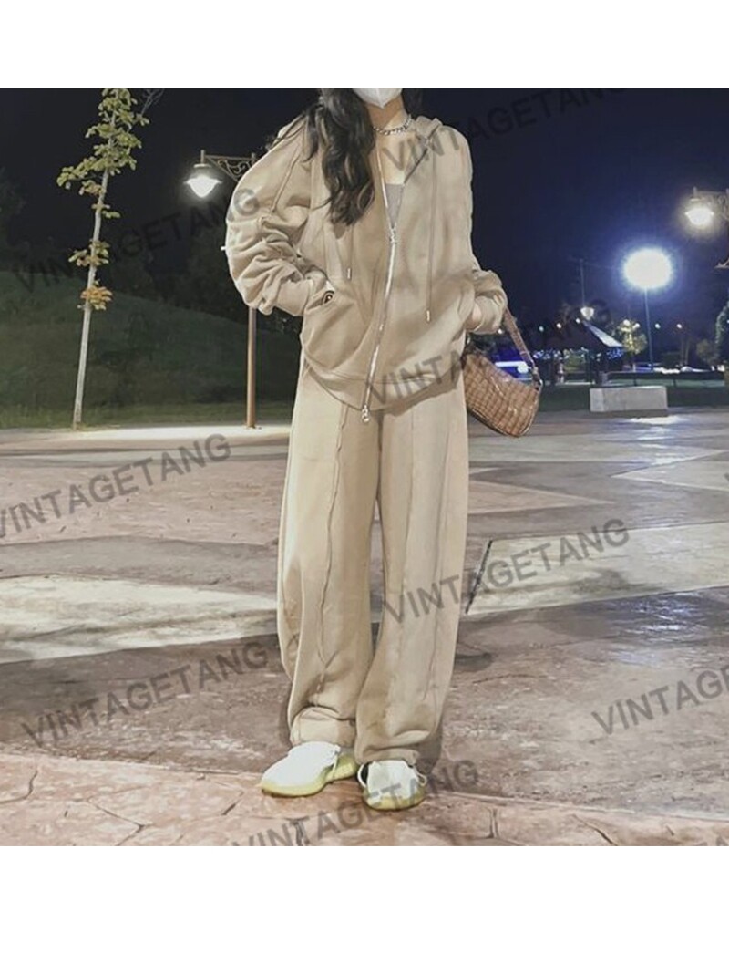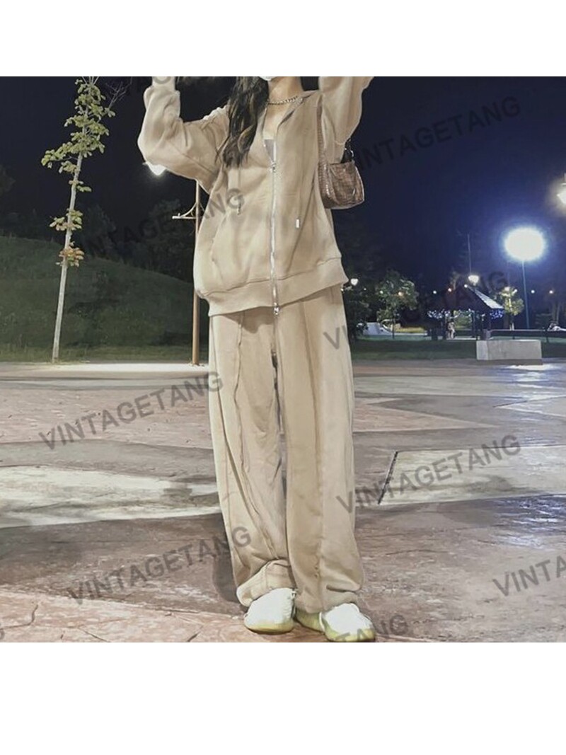Ретро хаки спортивная толстовка с молнией, куртка, комплект, в американском стиле, свободный крой