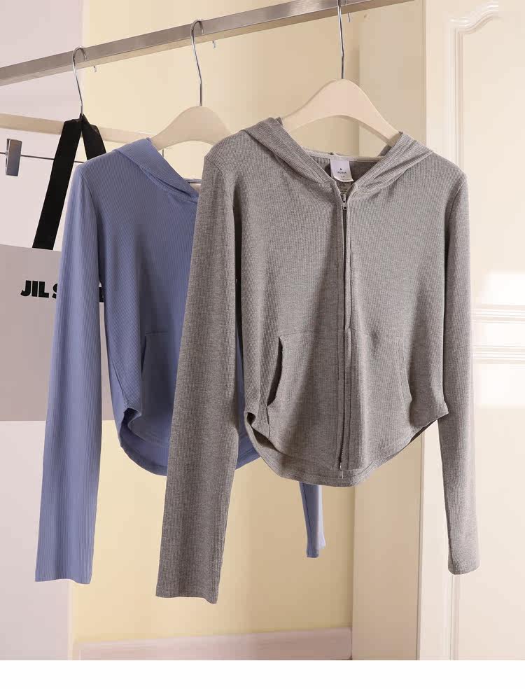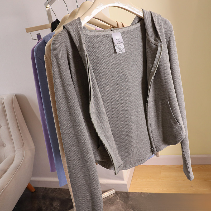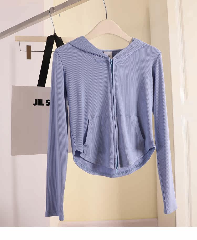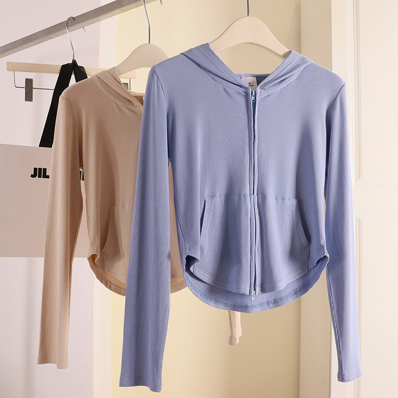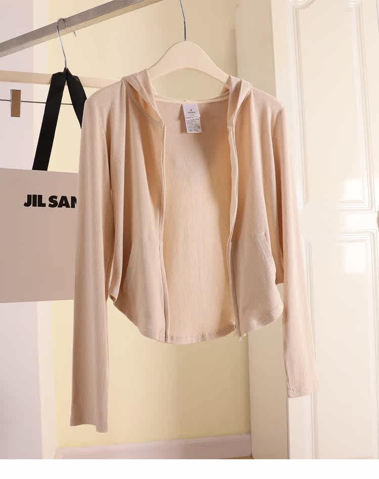 Трикотажный кардиган, летняя приталенная толстовка, короткая куртка с капюшоном, коллекция 2022, защита от солнца