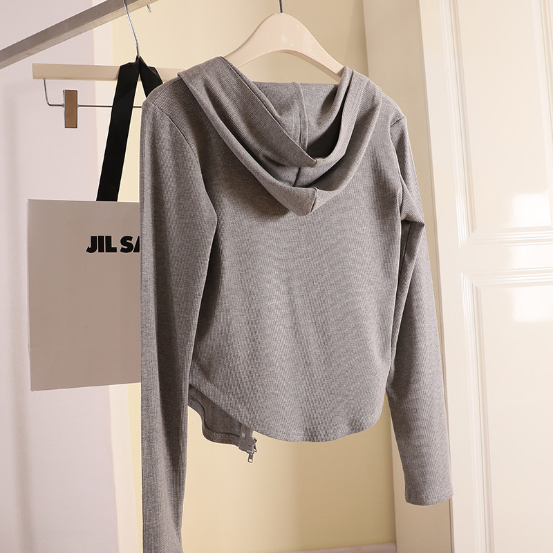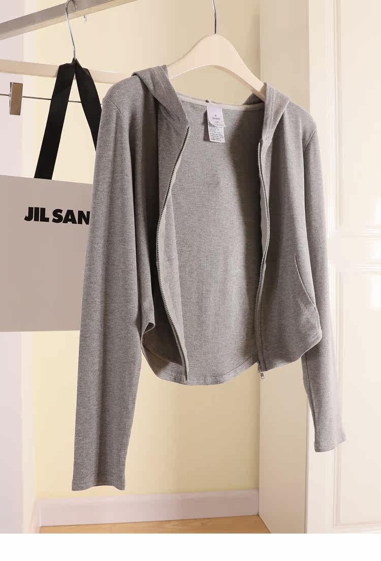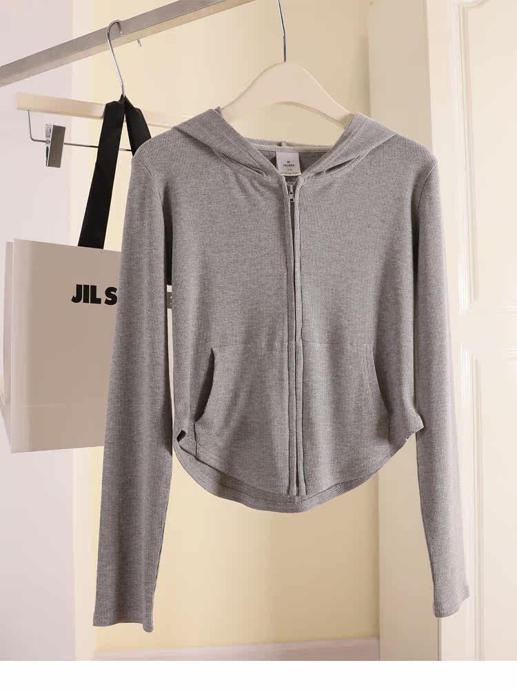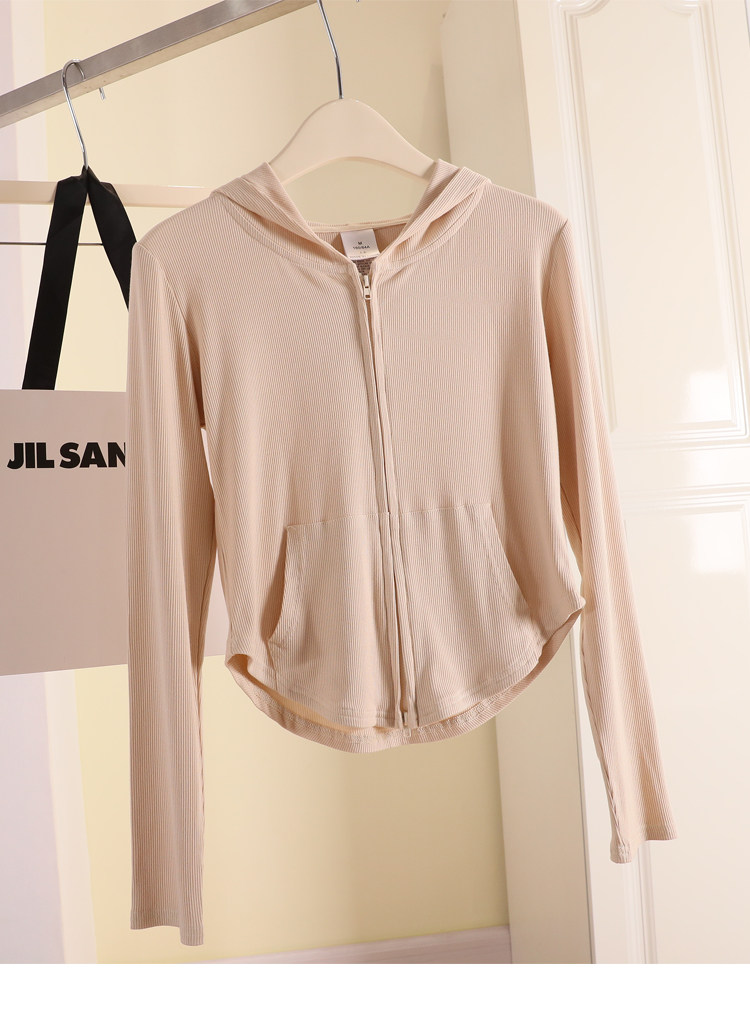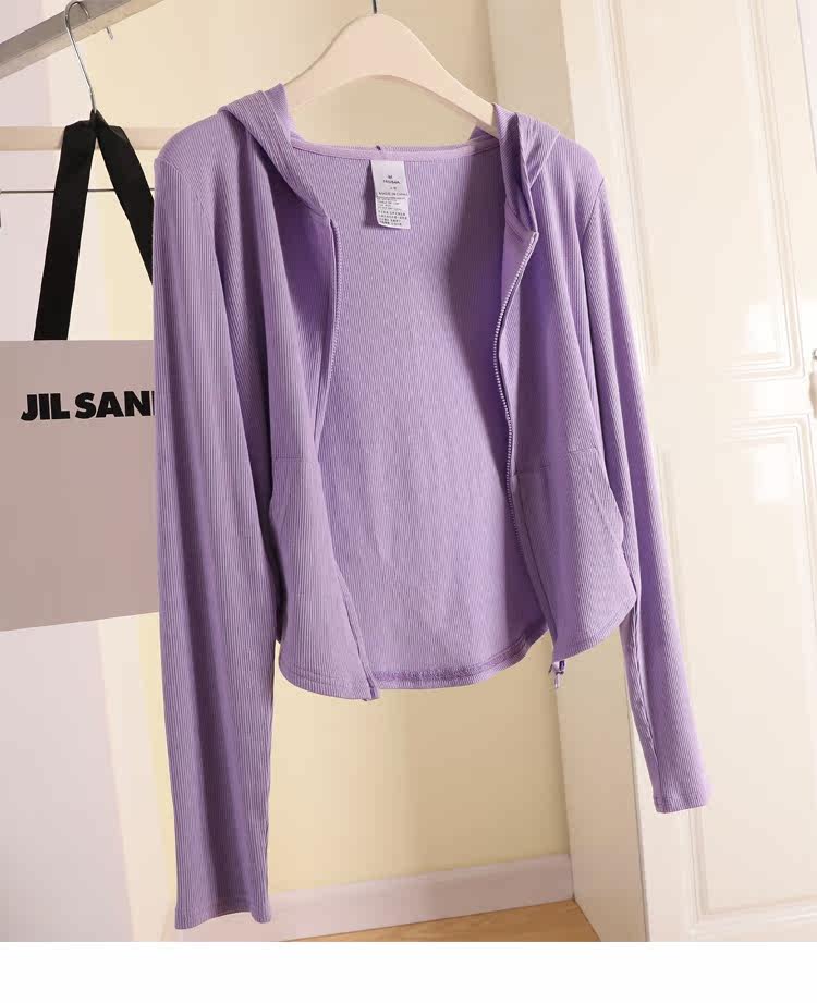 Трикотажный кардиган, летняя приталенная толстовка, короткая куртка с капюшоном, коллекция 2022, защита от солнца