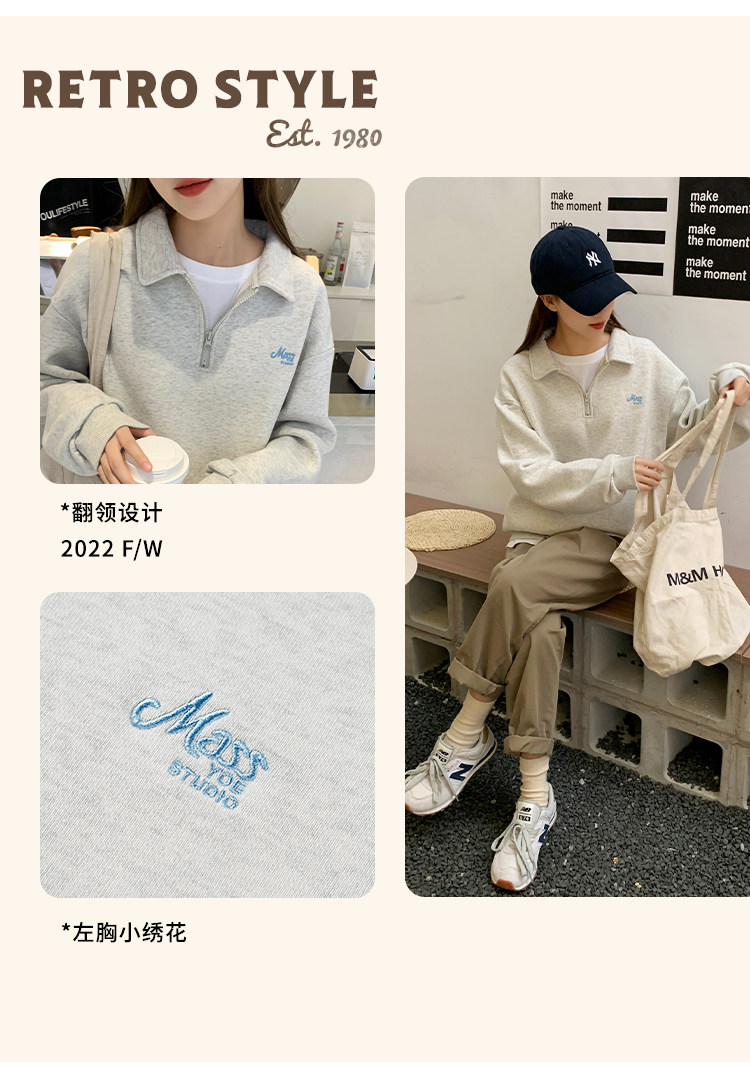Весенняя флисовая ретро толстовка, футболка polo с молнией, в американском стиле, подходит для подростков, на молнии