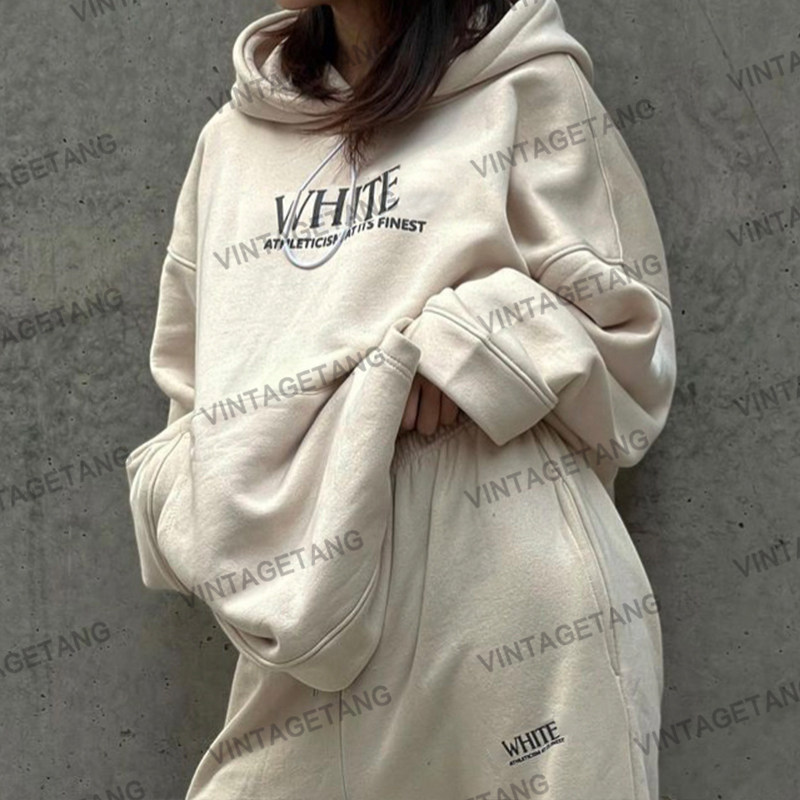 Ретро спортивный брендовый комплект с капюшоном, в американском стиле, оверсайз