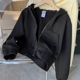 Толстовка с капюшоном для школьников, короткая куртка с молнией с капюшоном, в корейском стиле