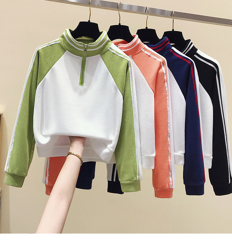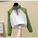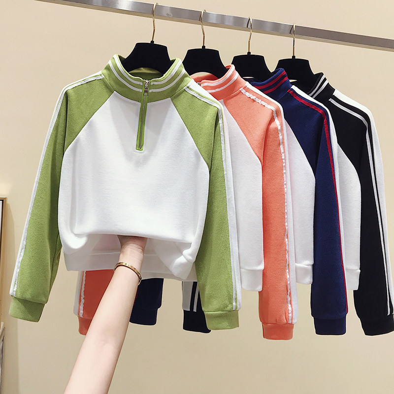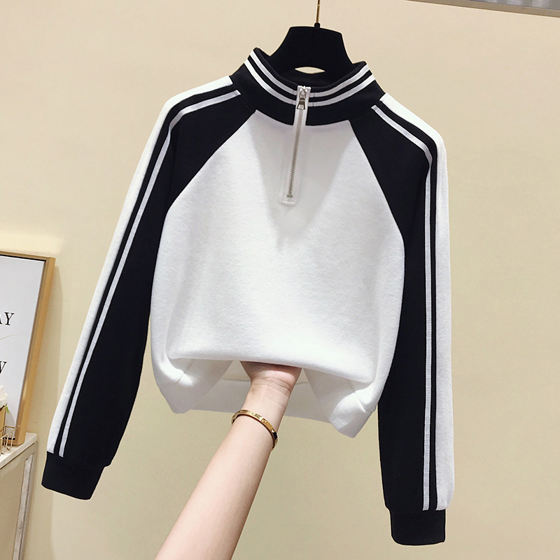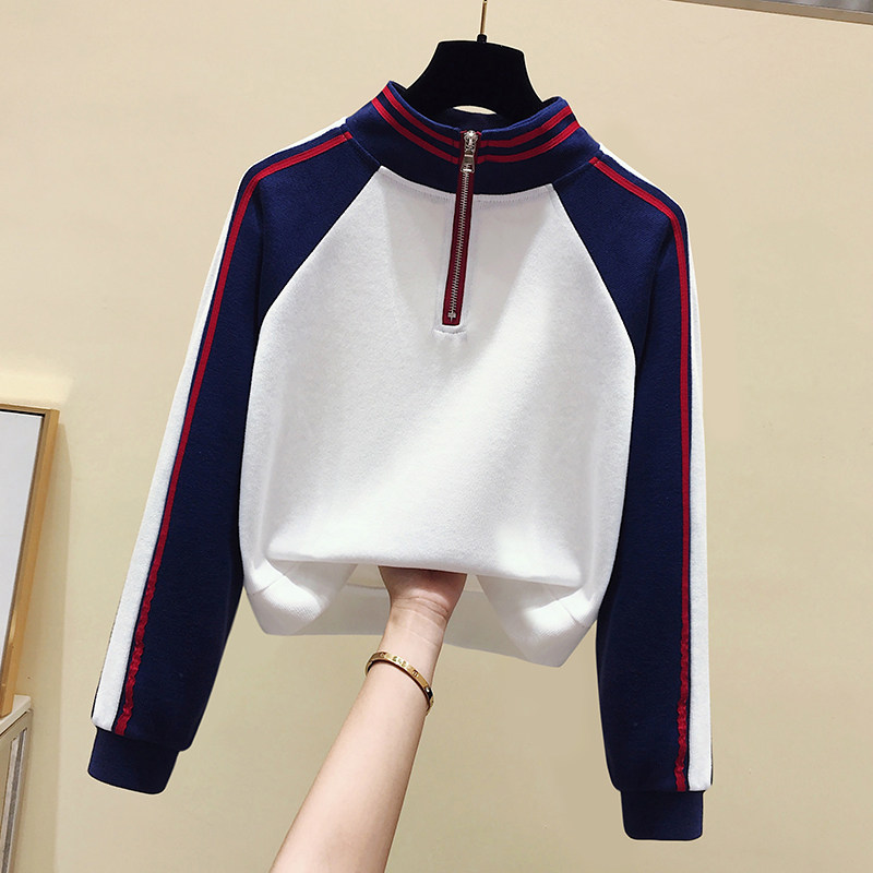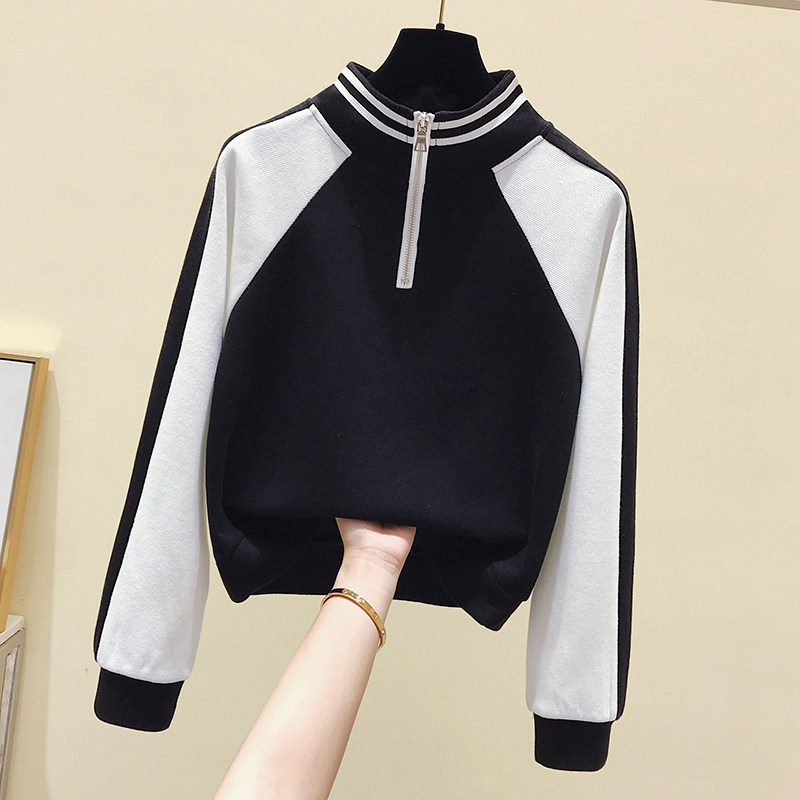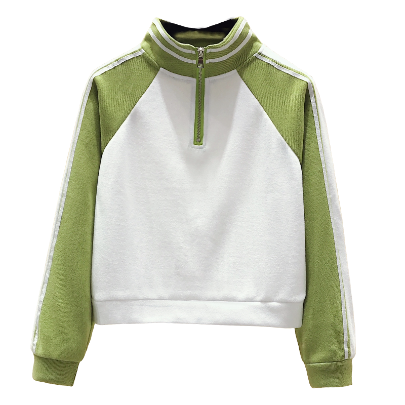 Короткая осенняя толстовка, футболка с молнией, лонгслив, высокая талия, на молнии, в американском стиле, оверсайз
