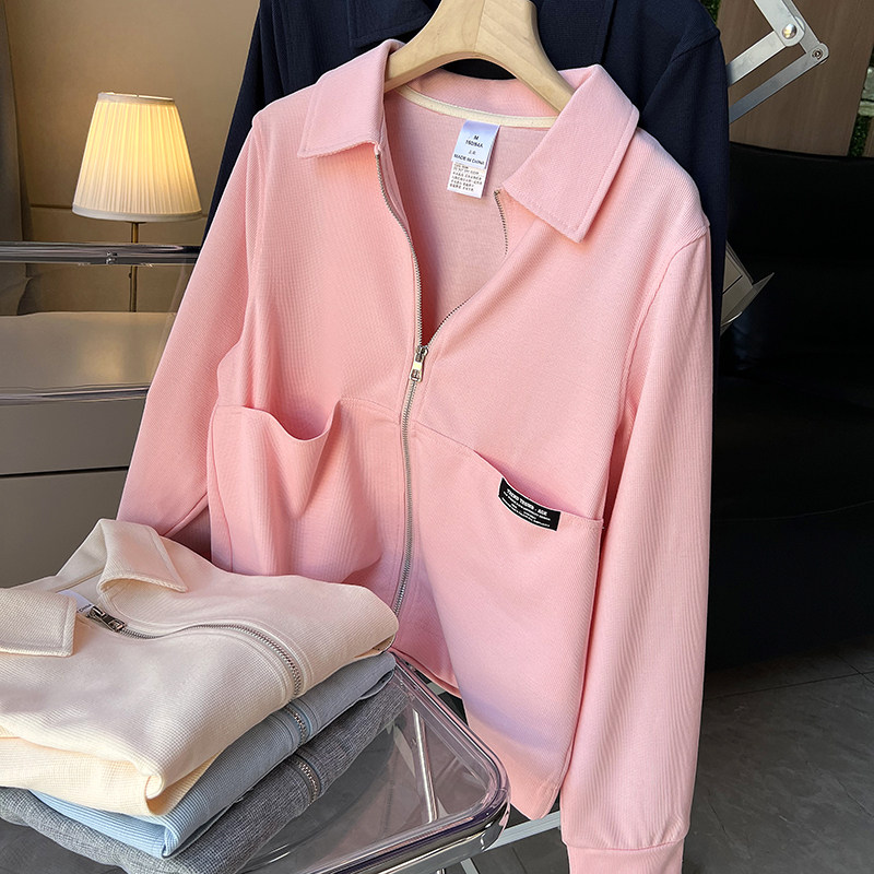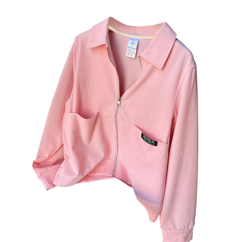 Розовая весенняя куртка, осенний кардиган с молнией, толстовка для отдыха