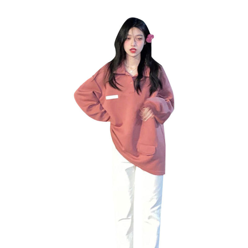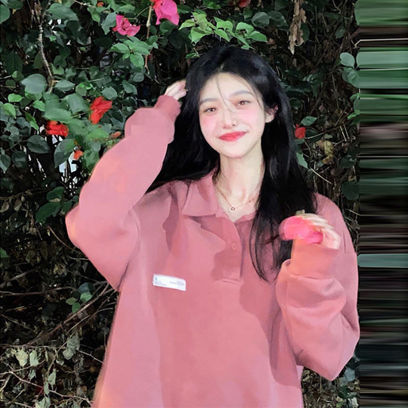 Осенняя розовая дизайнерская толстовка, воротник поло, в американском стиле, оверсайз, коллекция 2022, тренд сезона