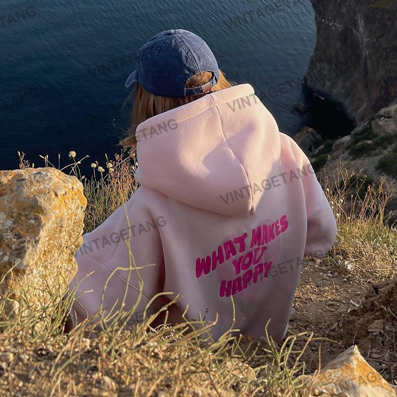 Ретро розовая флисовая толстовка с капюшоном, балахон, в американском стиле, с вышивкой, оверсайз