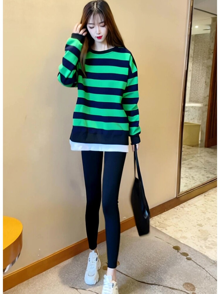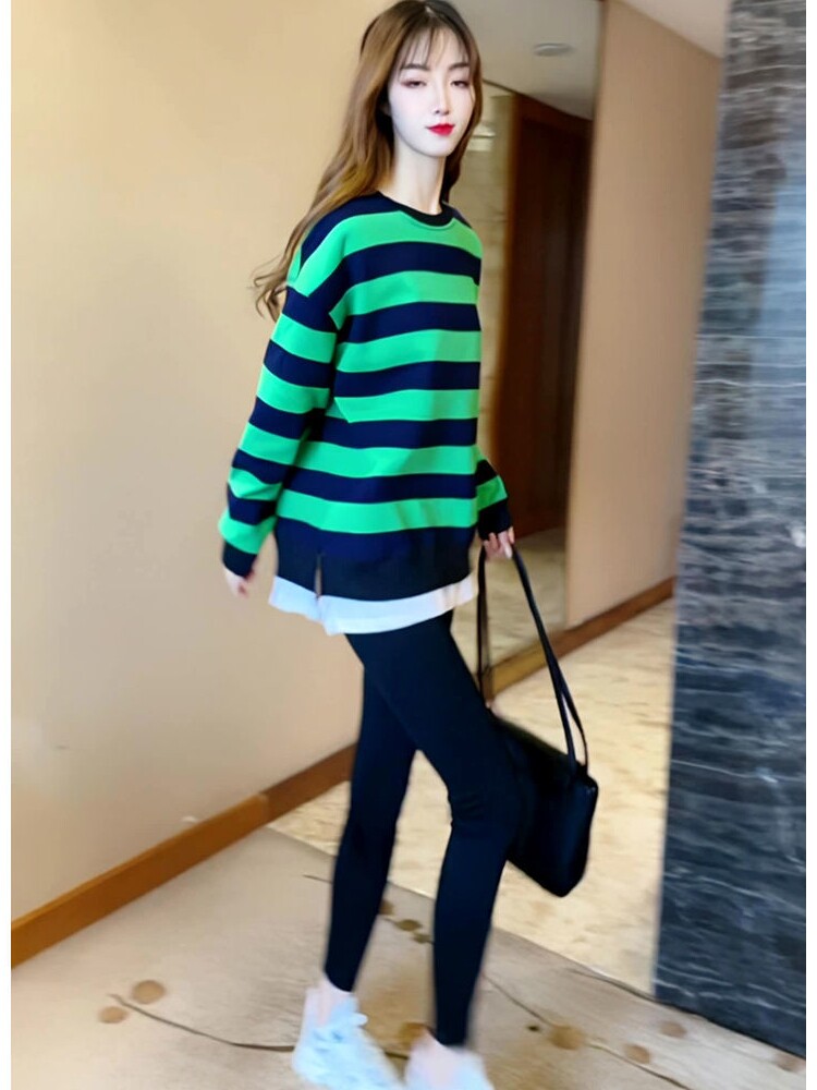 Зеленый осенний свитшот, длинный комплект, акула, штаны, толстовка, новая коллекция, подходит для подростков, средней длины