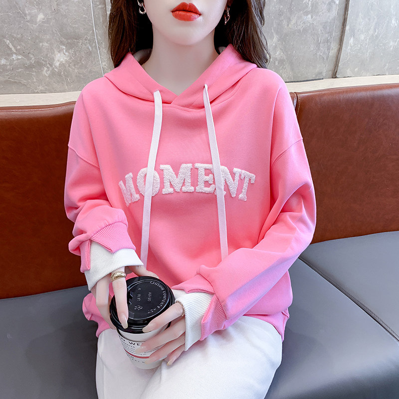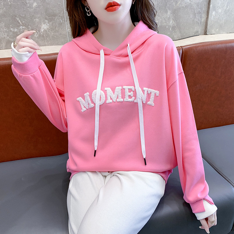 Комплект, дизайнерская толстовка с капюшоном, лонгслив с буквами, 2024 года, тренд сезона, свободный крой, в западном стиле