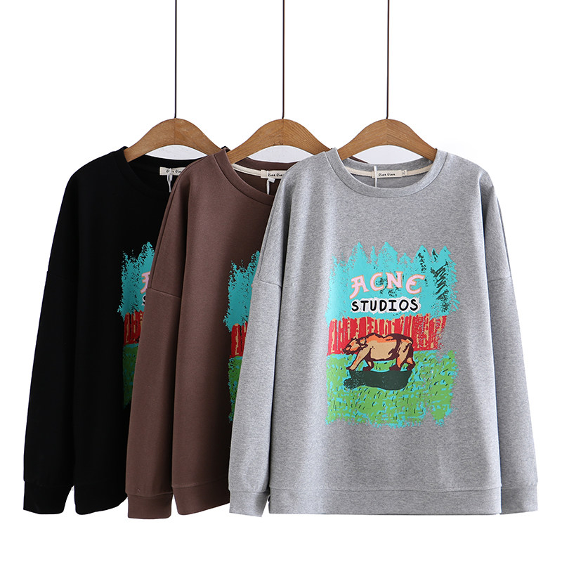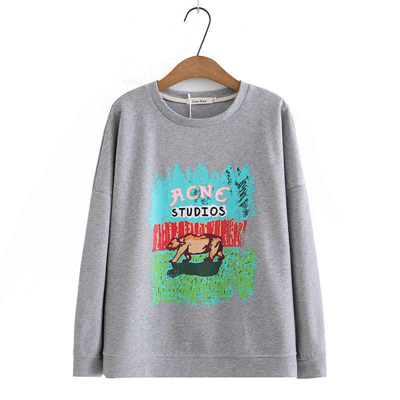 Осенний мультяшный лонгслив с круглым воротником для отдыха, толстовка, в корейском стиле, большой размер