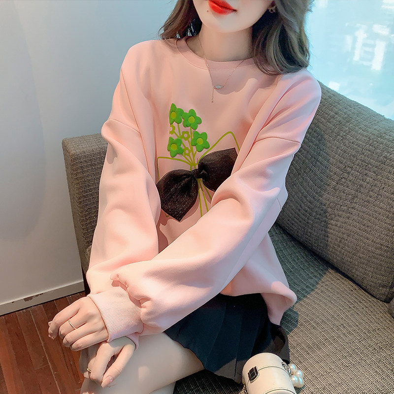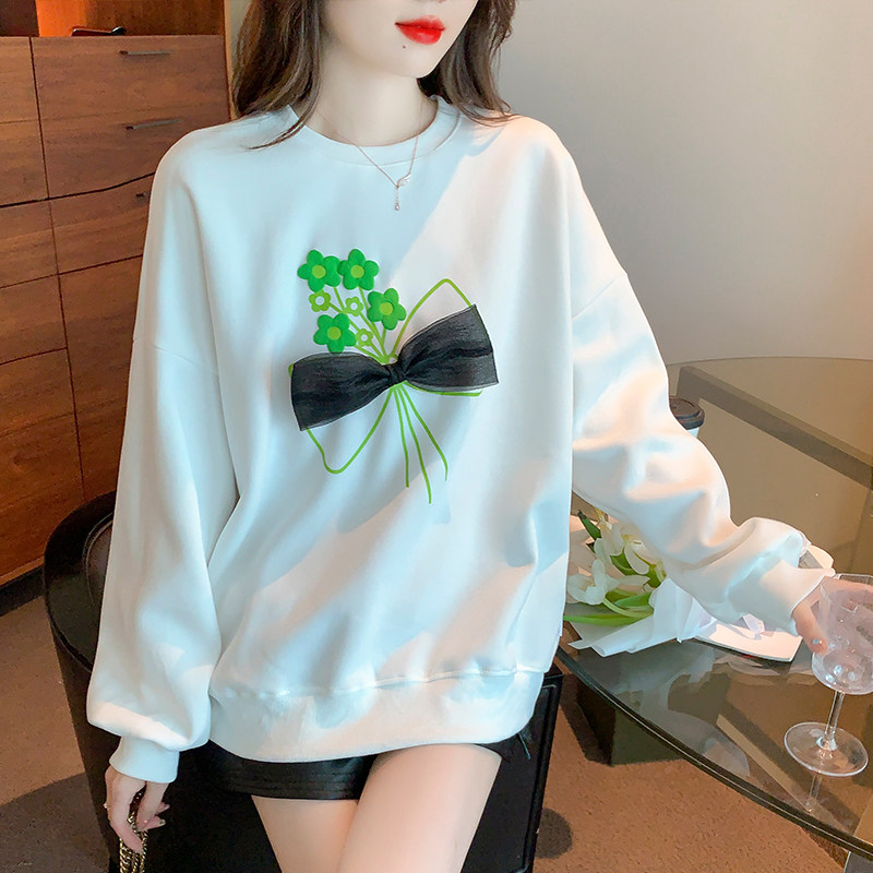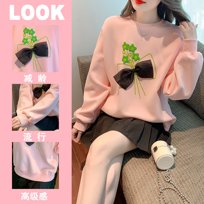 Осенняя дизайнерская трехмерная толстовка с бантиком с круглым воротником, тренд сезона, оверсайз