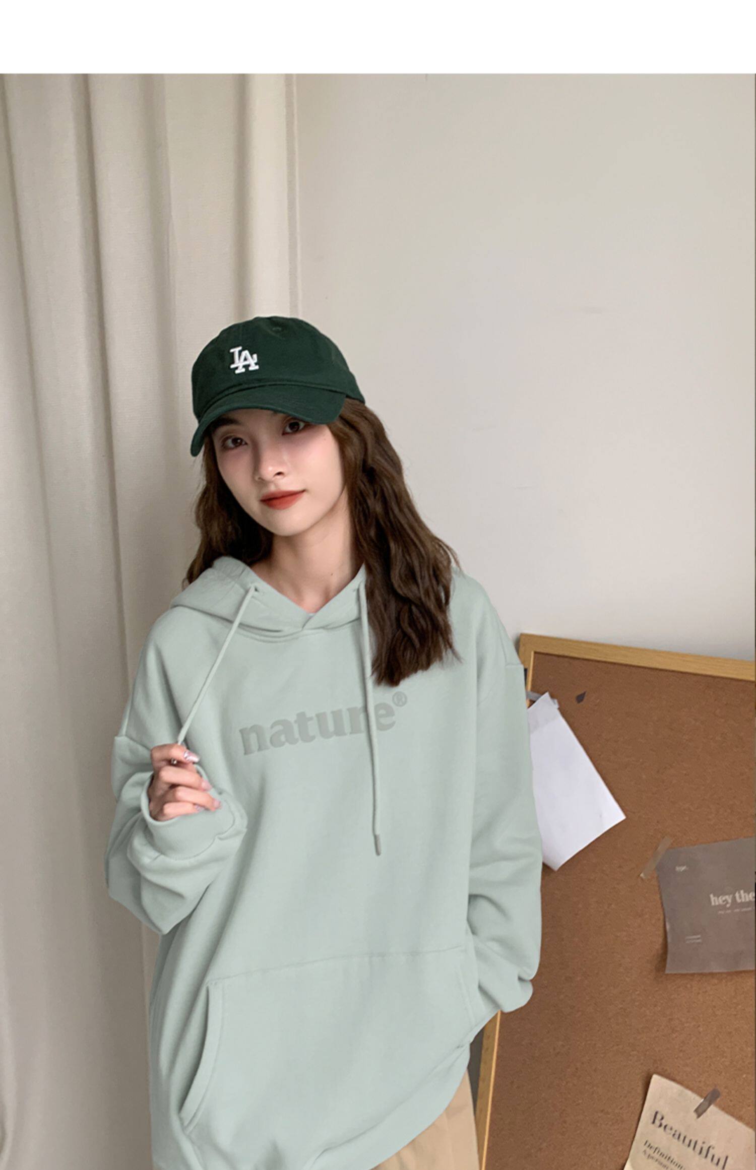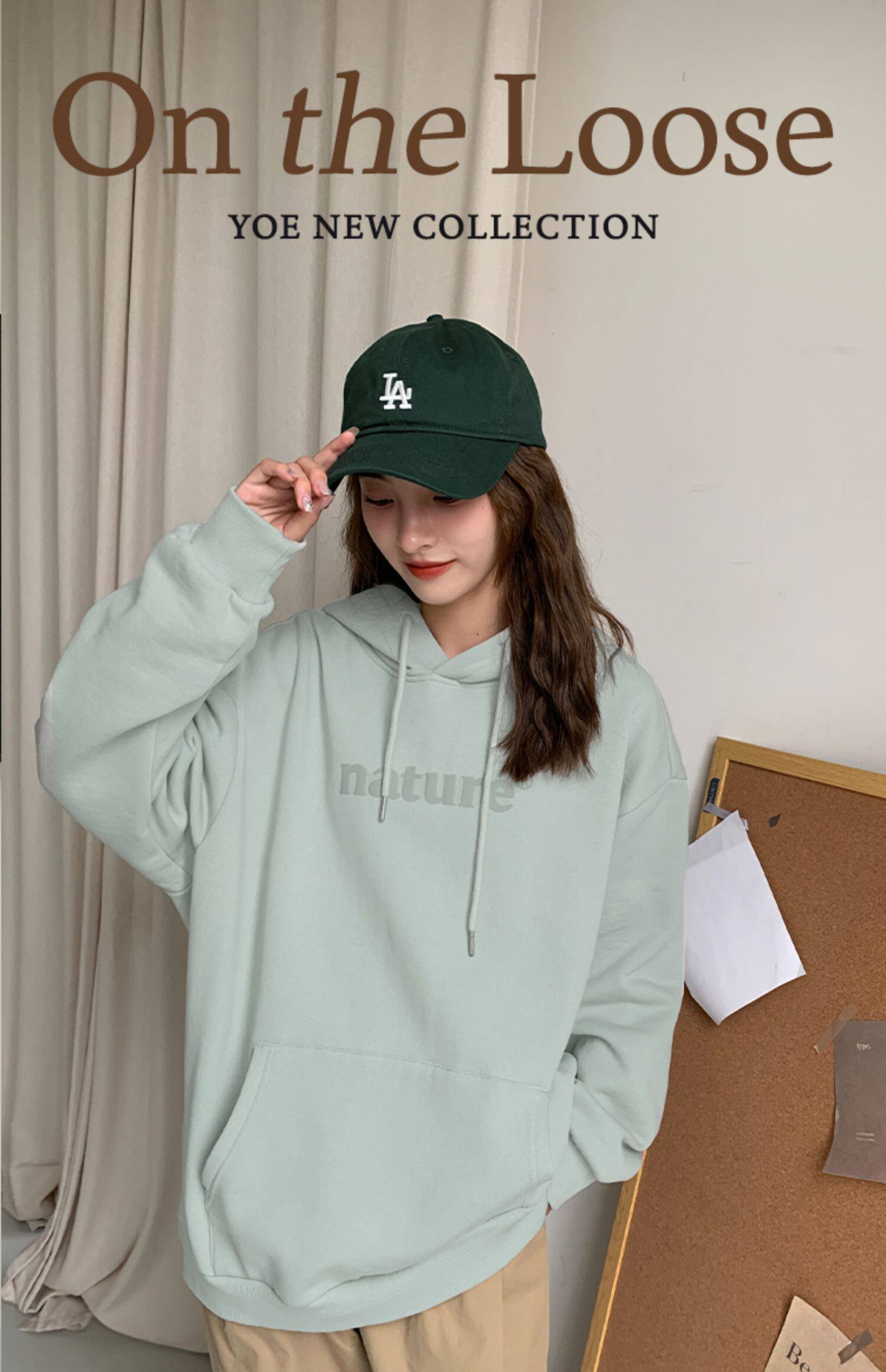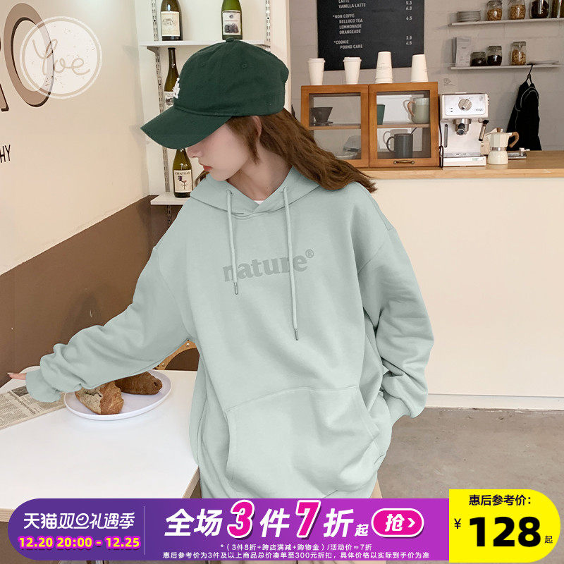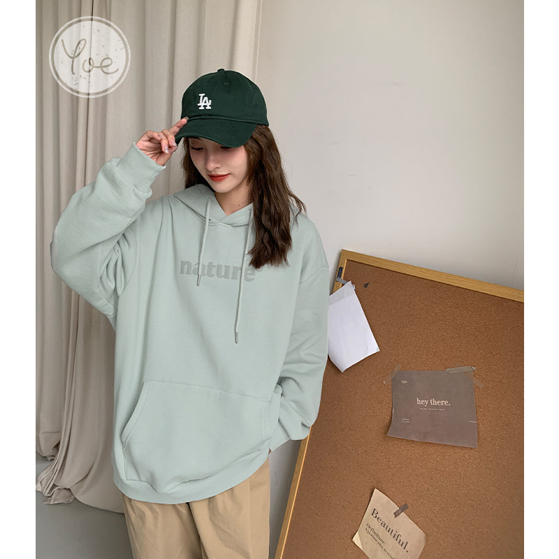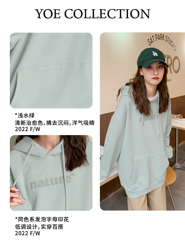 YOE Свитер Женский 23 Осенняя одежда светло -зеленая пена буквы женский дизайн чувства повседневного кармана простая толчка с капюшоном