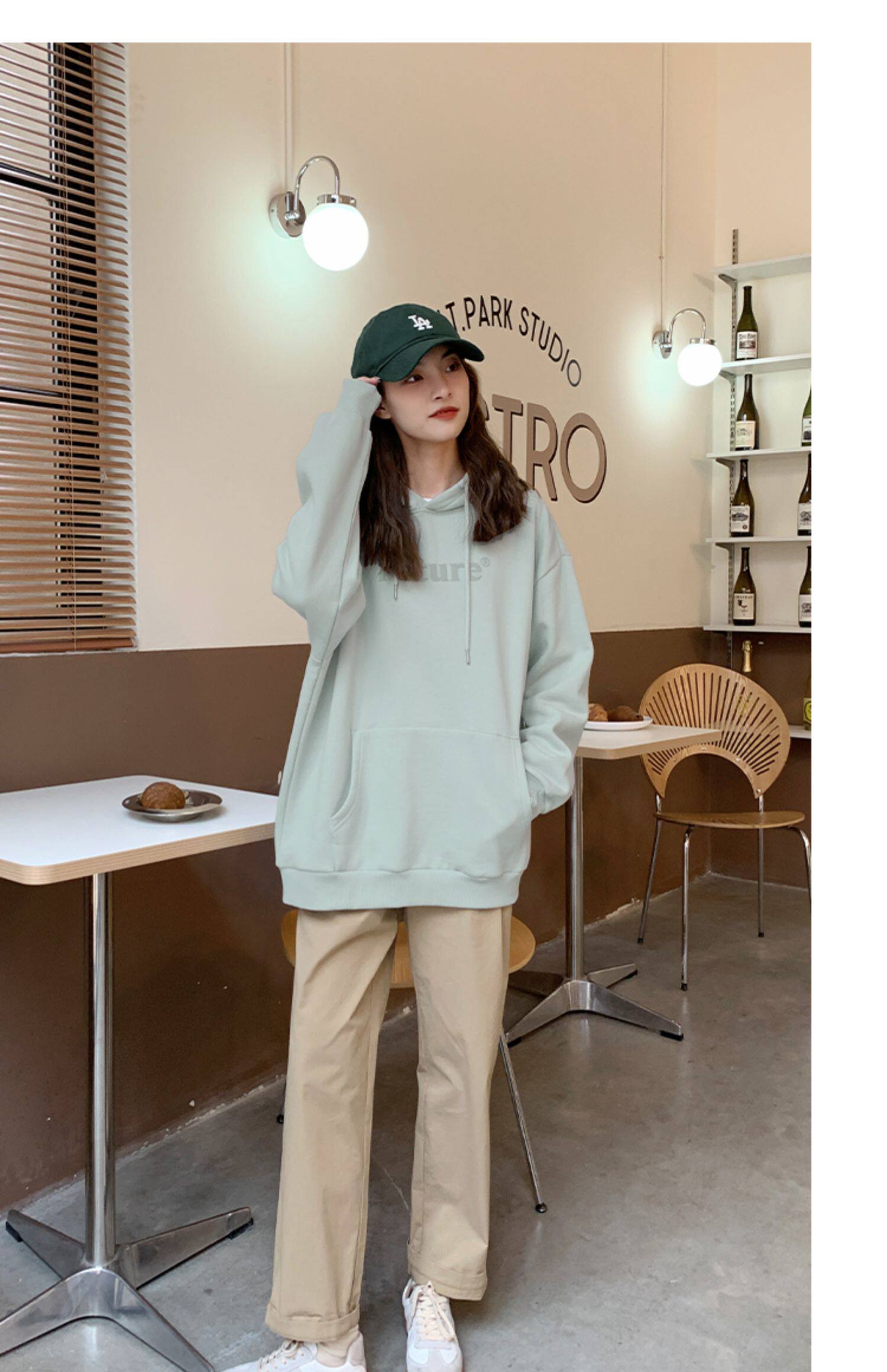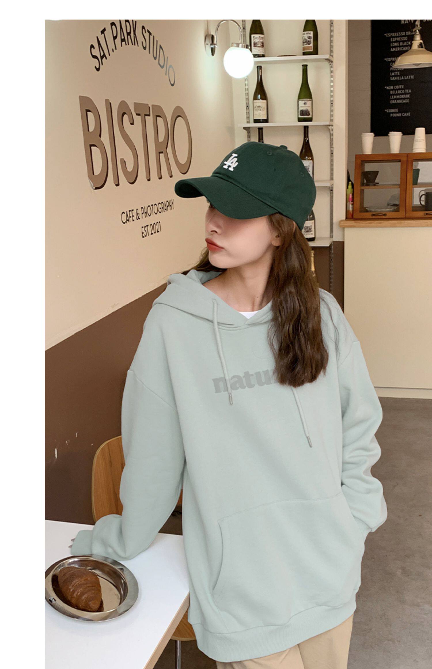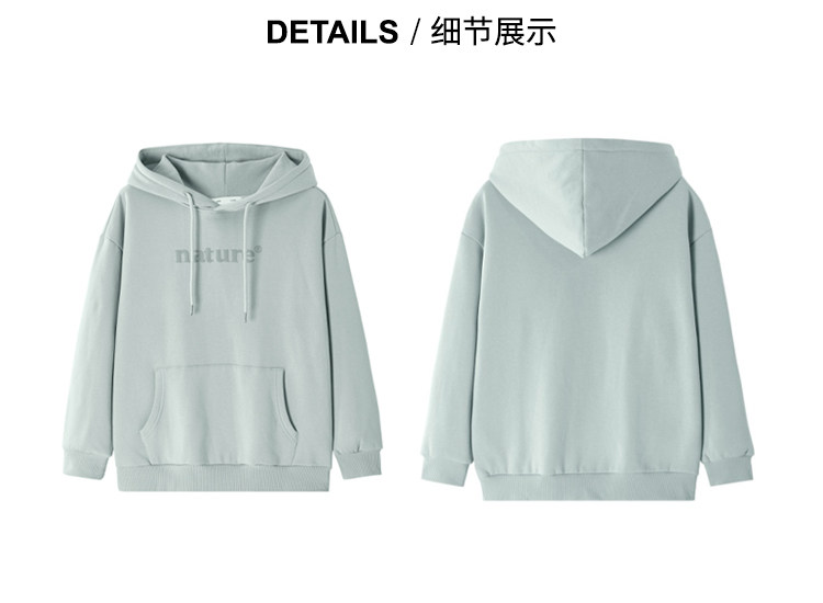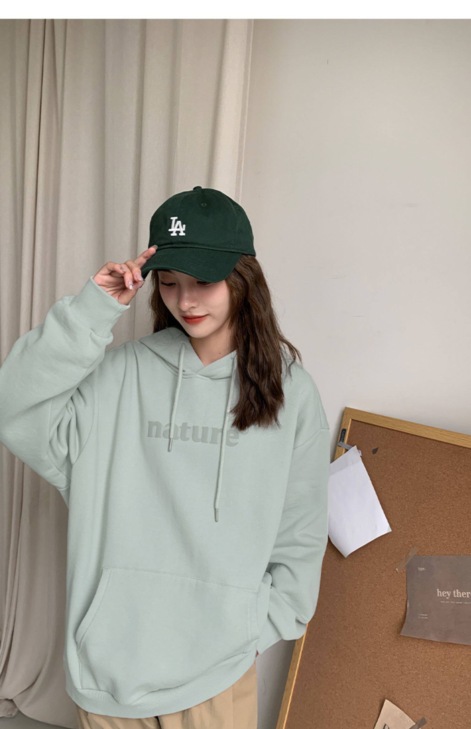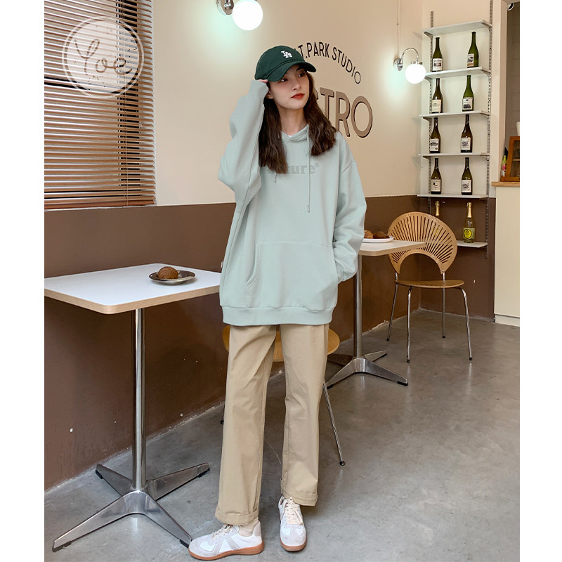 YOE Свитер Женский 23 Осенняя одежда светло -зеленая пена буквы женский дизайн чувства повседневного кармана простая толчка с капюшоном