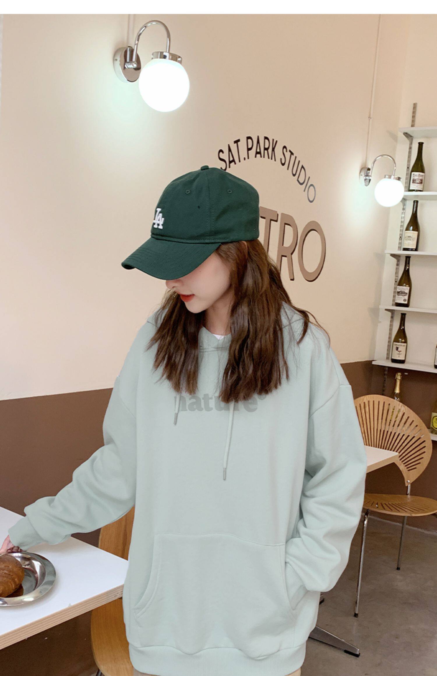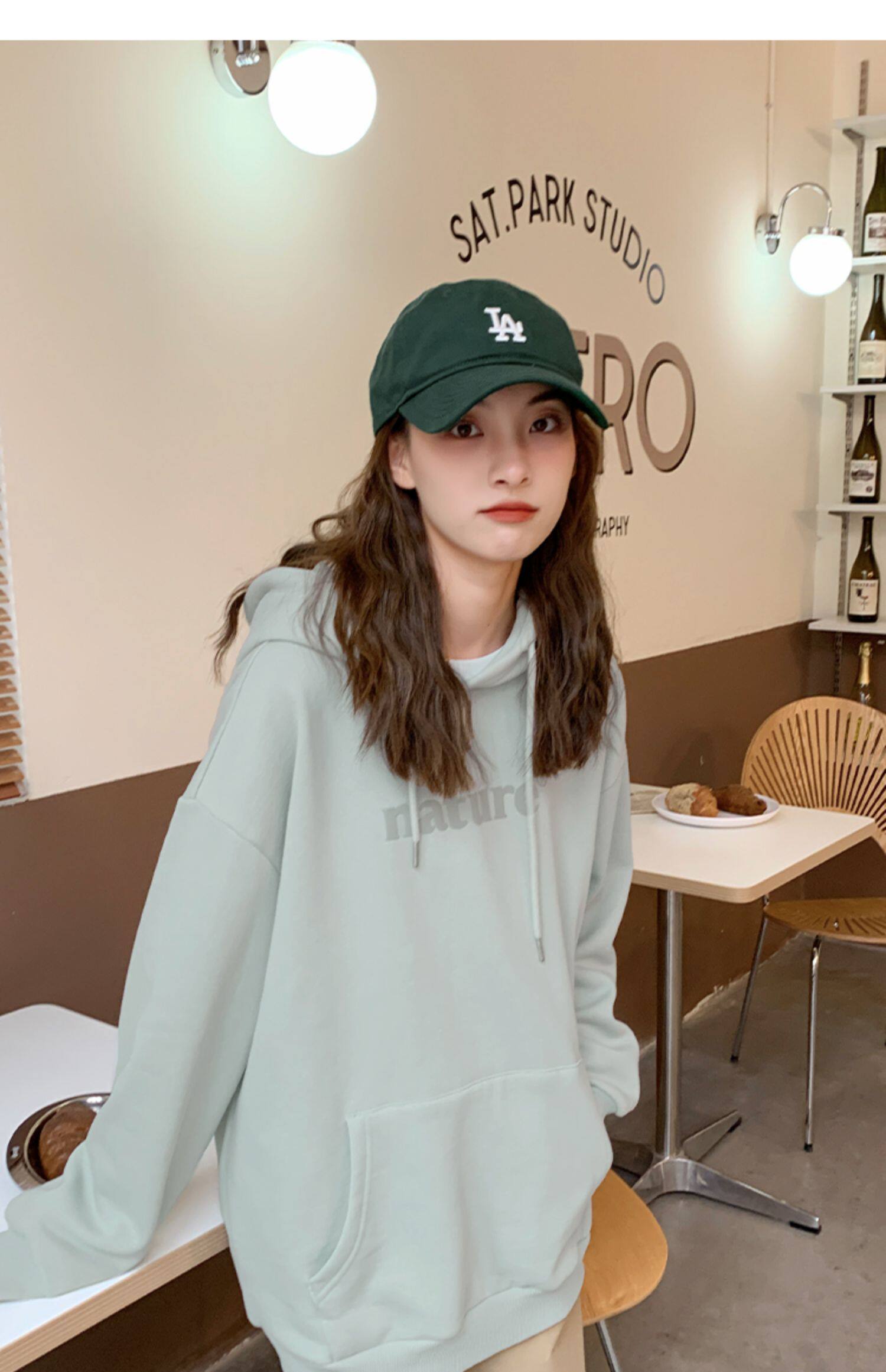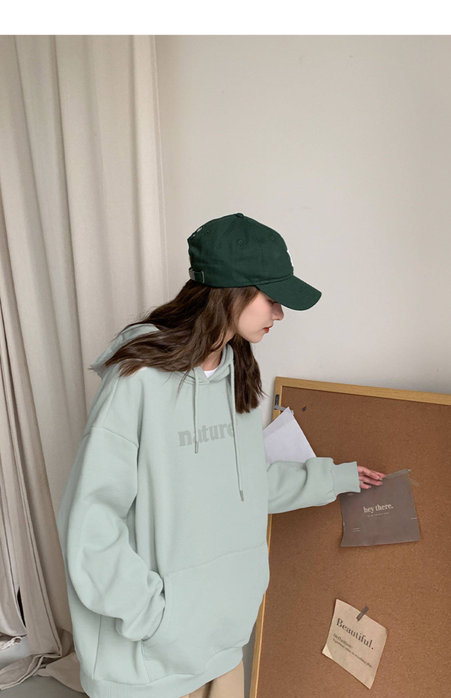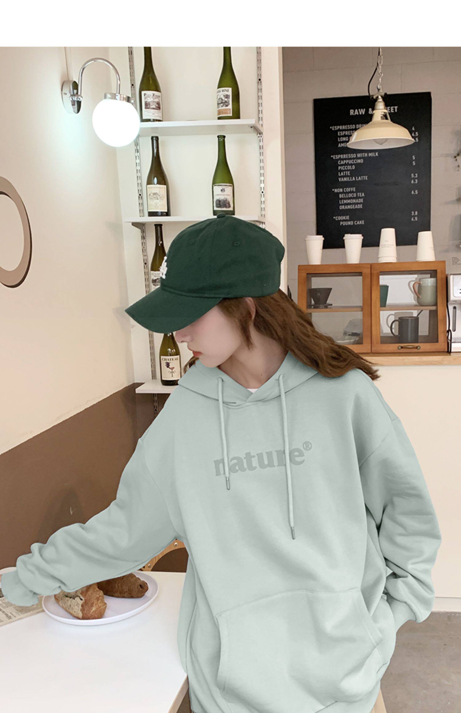 YOE Свитер Женский 23 Осенняя одежда светло -зеленая пена буквы женский дизайн чувства повседневного кармана простая толчка с капюшоном