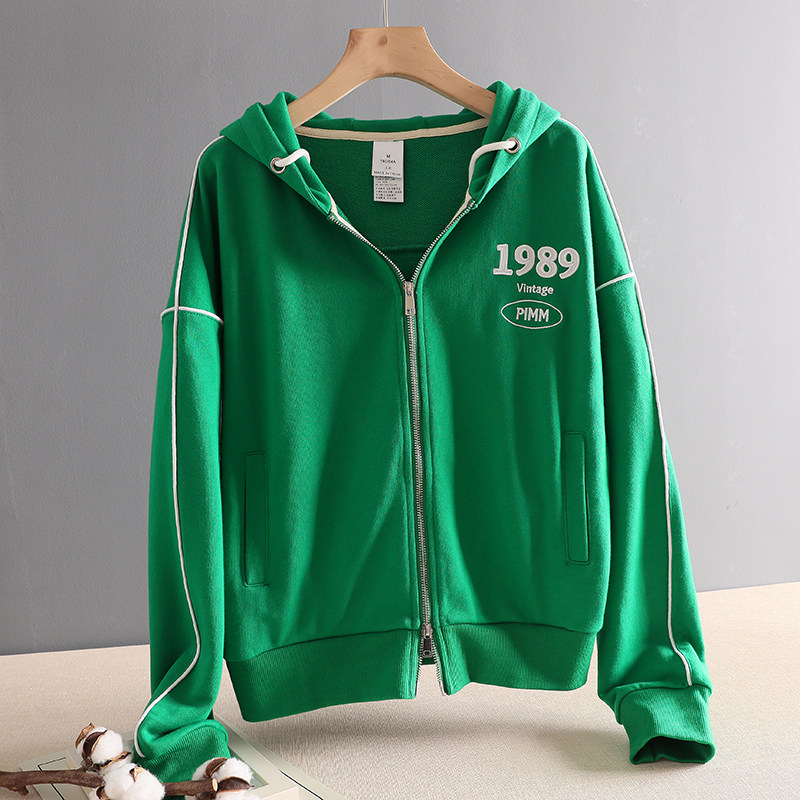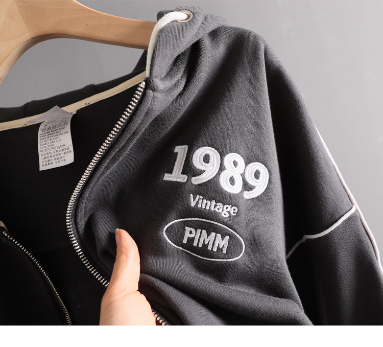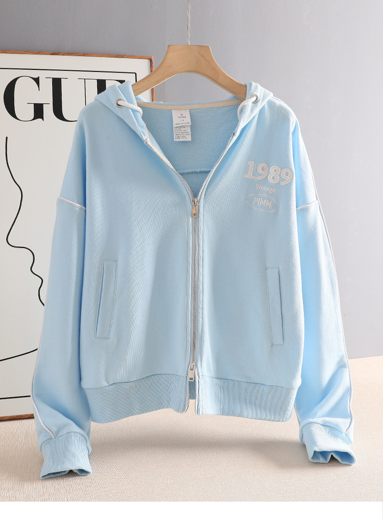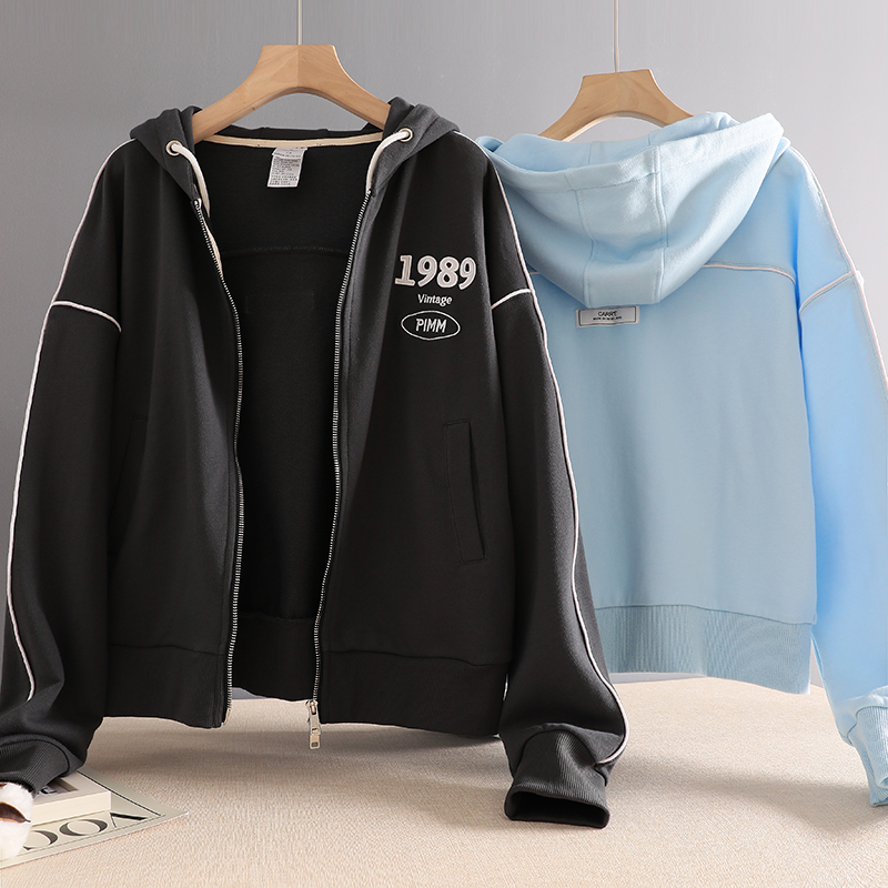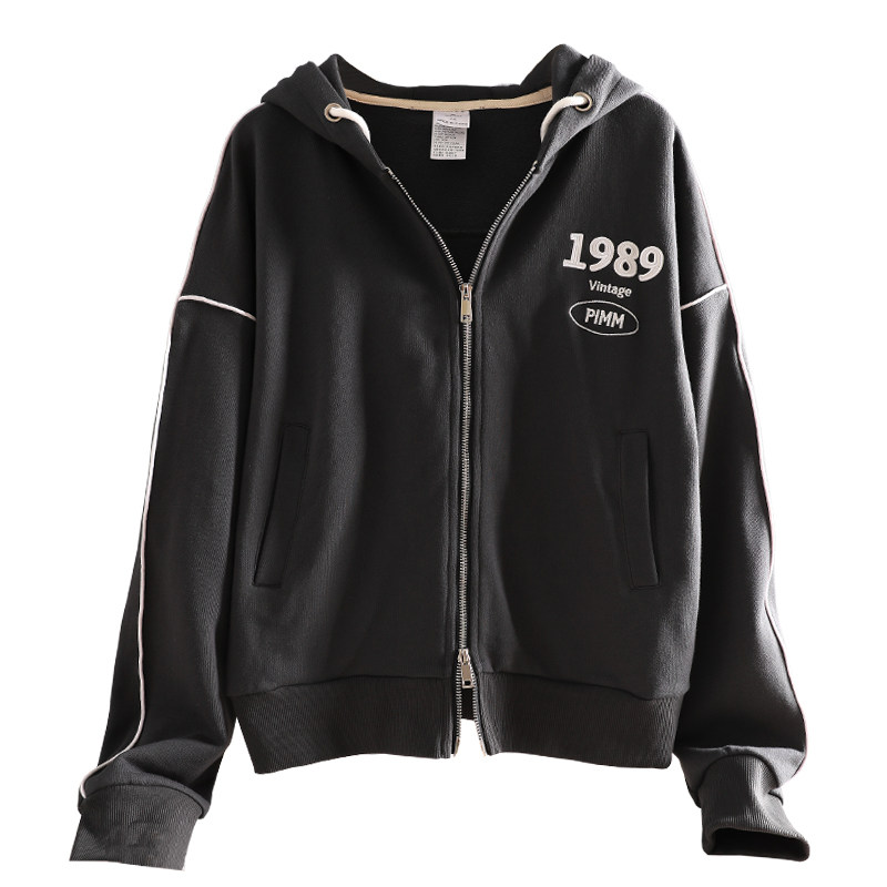 Тонкая толстовка с молнией, короткая куртка, коллекция 2022, осенняя, оверсайз, с вышивкой