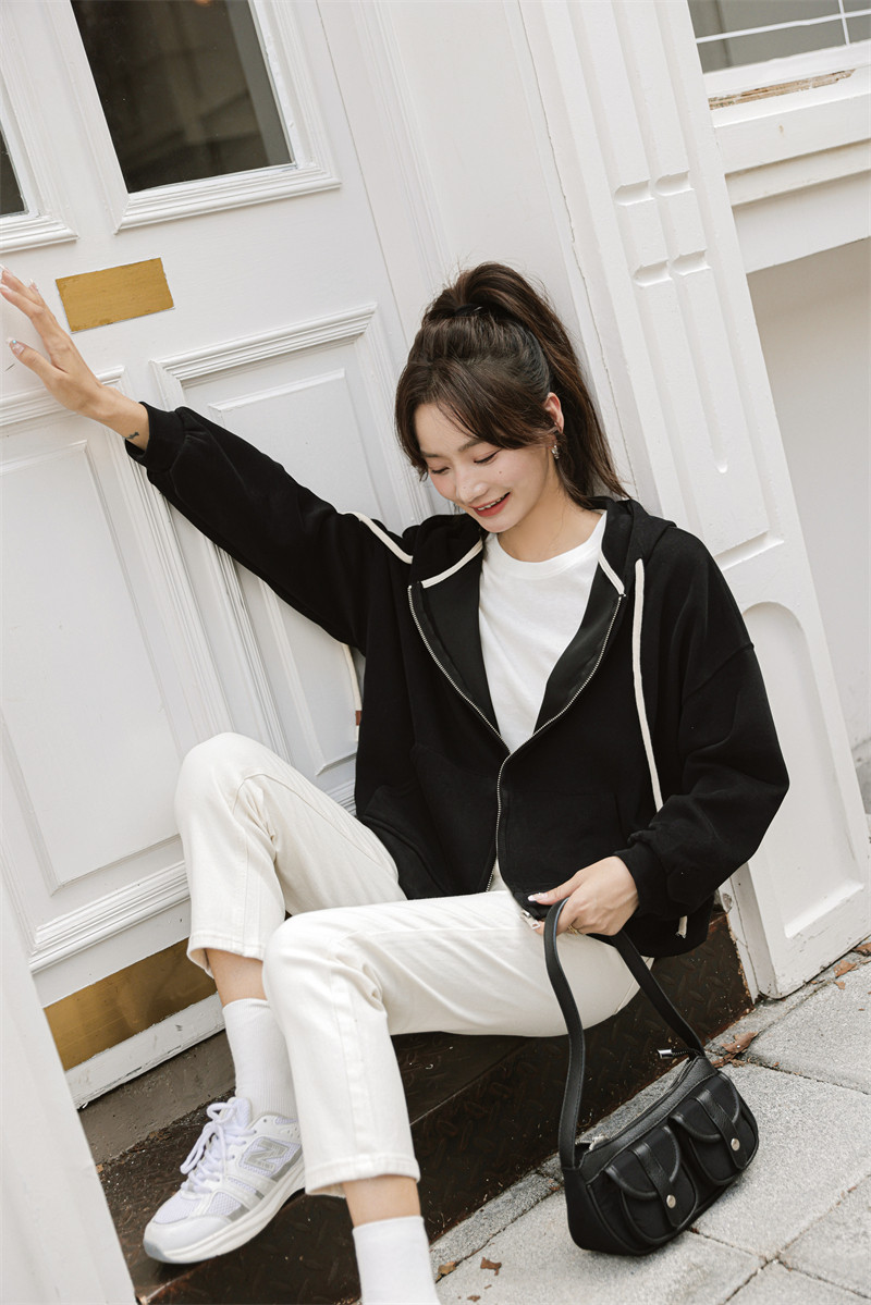 Весенняя толстовка с капюшоном, дизайнерская куртка, кардиган с молнией, лонгслив, в корейском стиле, тренд сезона