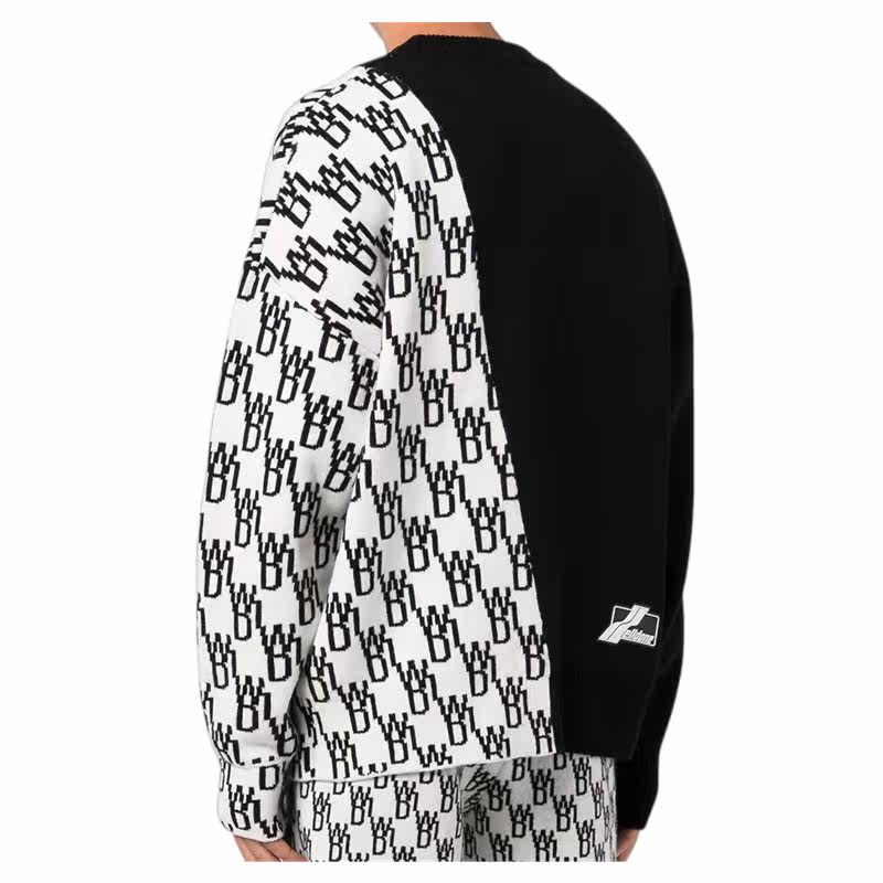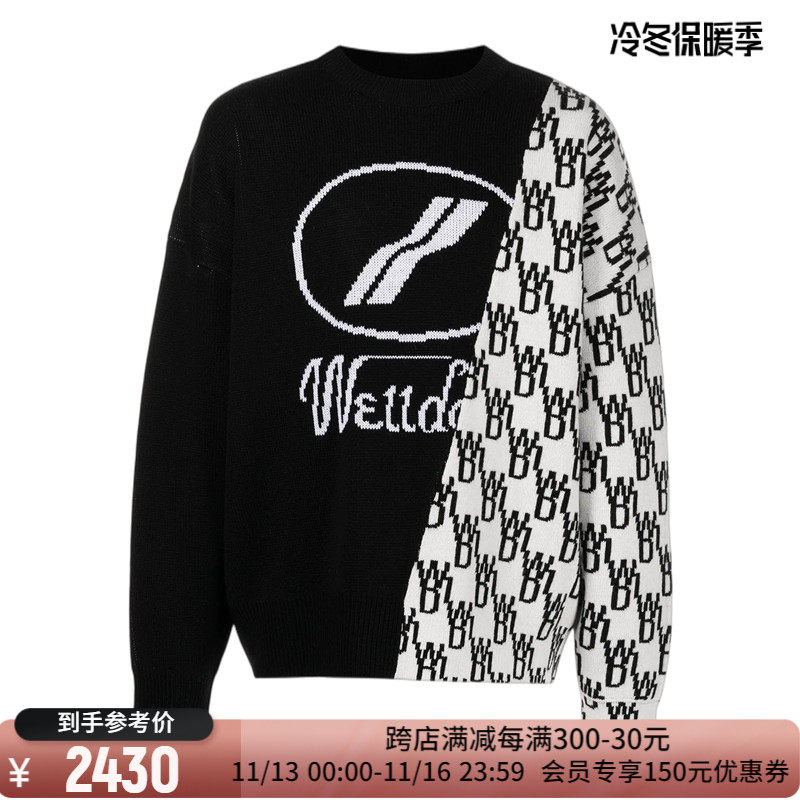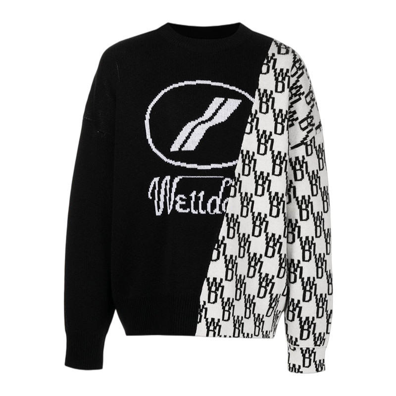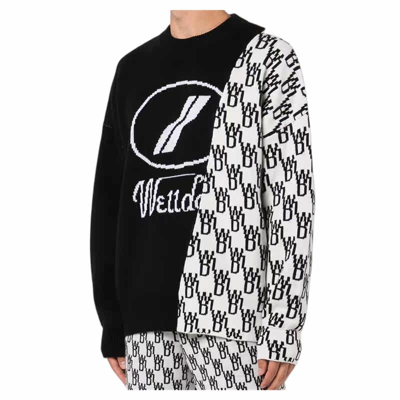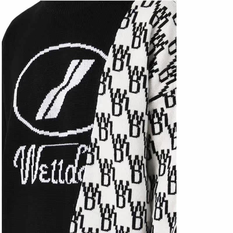 We11 Dode Logo Logo, Контрастное цвет нерегулярный круглый вязаный свитер 301361