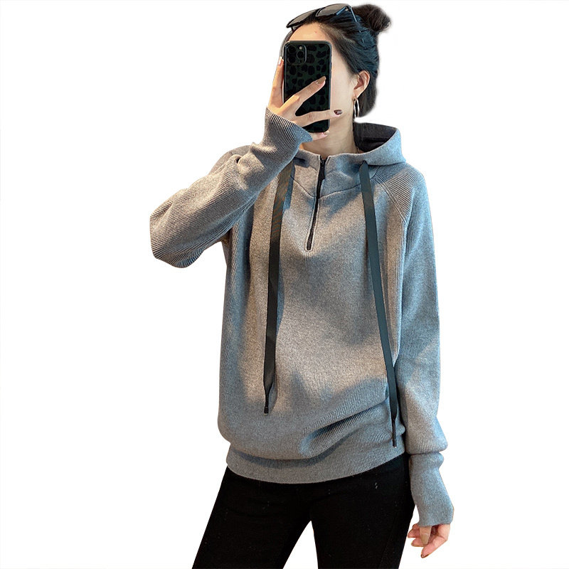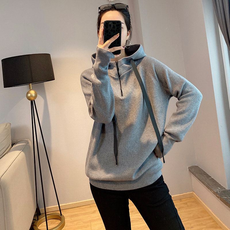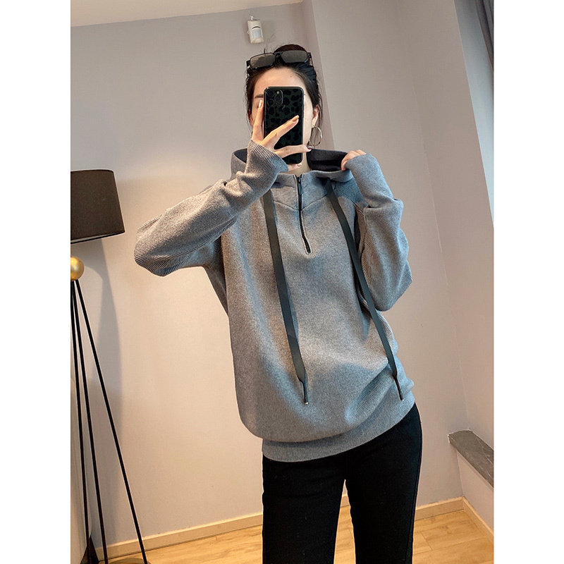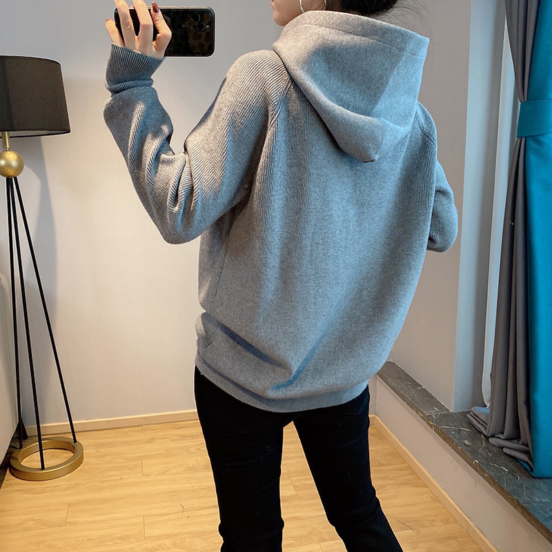 Брендовый трикотажный свитер с капюшоном с молнией, толстовка, на молнии