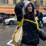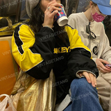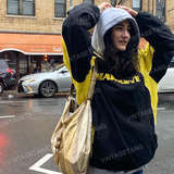 Винтагетанг -стрит черный контрастный сплайсинг отдых спортивный свитер женский бренд с длинным рукавом топ