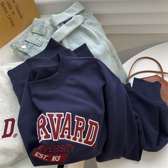 Демисезонная толстовка с круглым воротником, куртка, английские буквы, с вышивкой