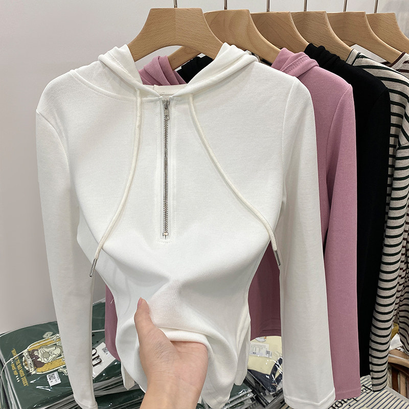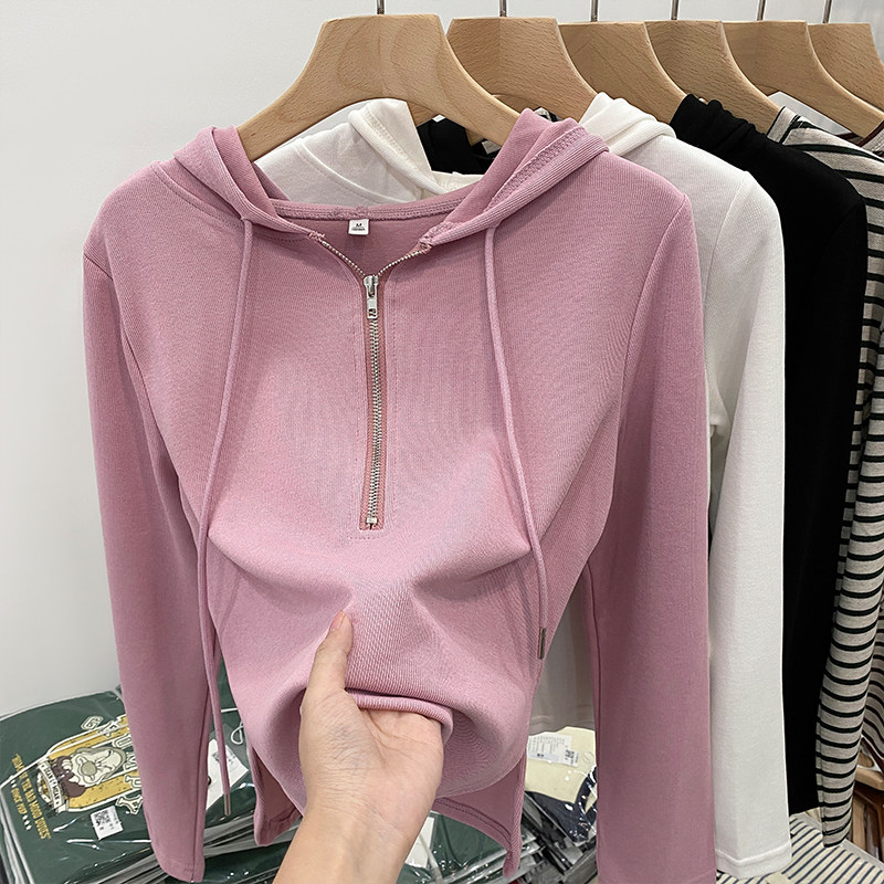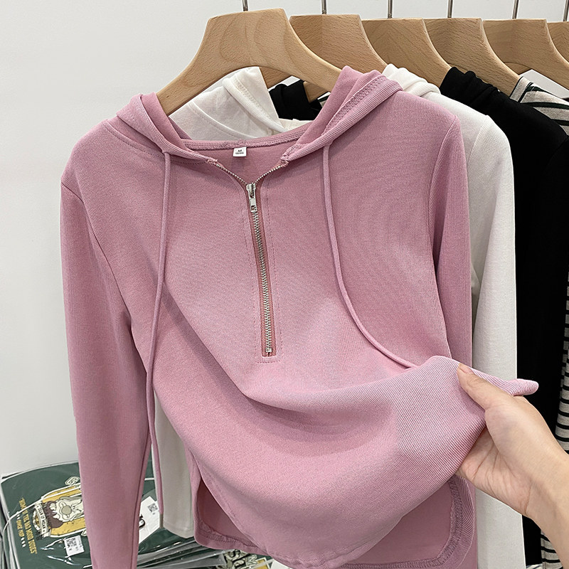 Мягкий и восковой, нежный пронзительный капюшон, нерегулярная T -Fork 2024 Ранняя весна осень, полу -открытый женский свитер с чистым желанием ветра