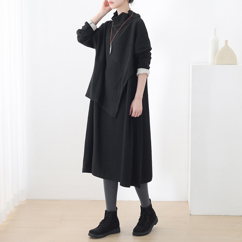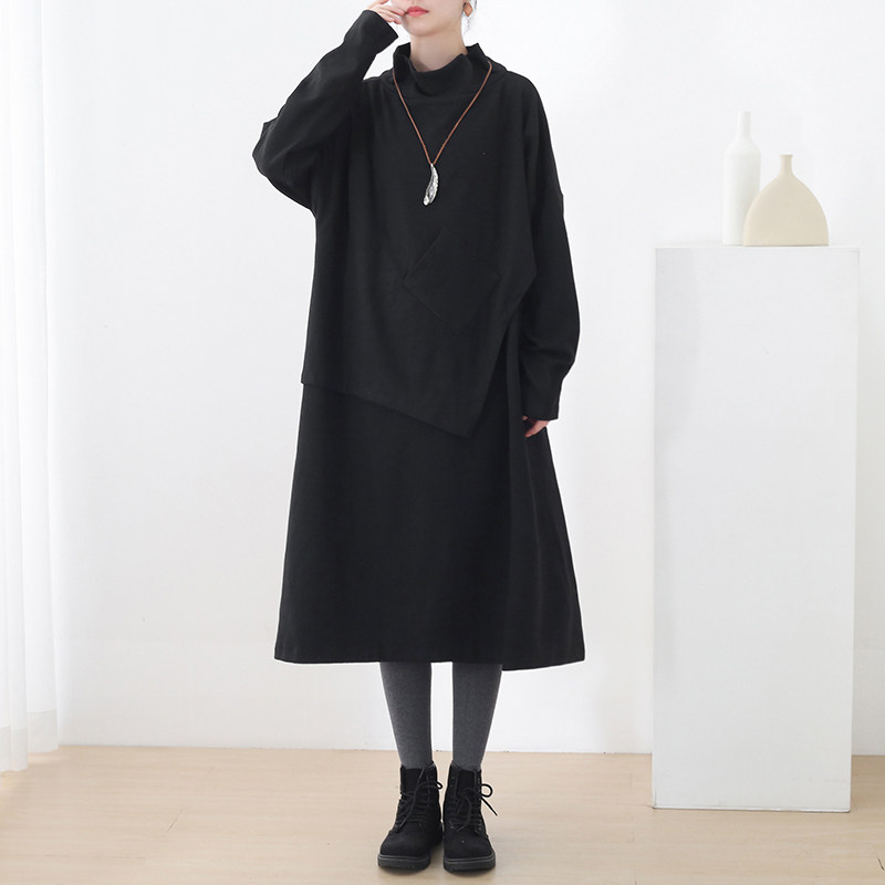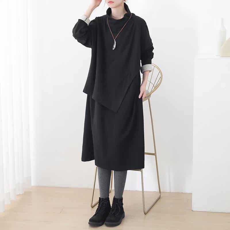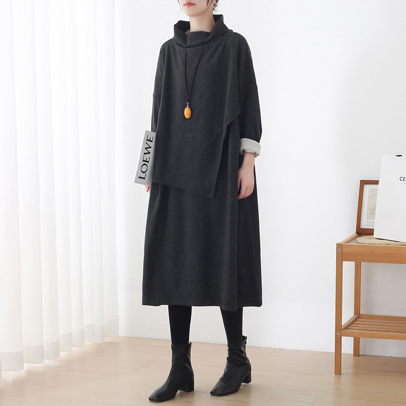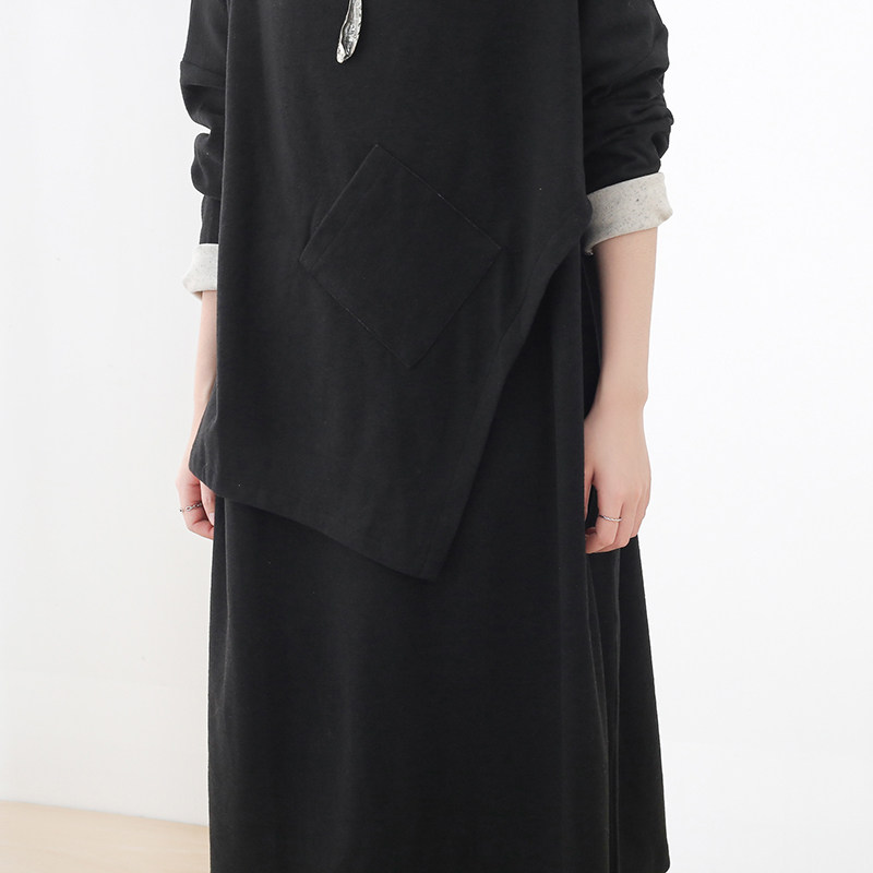 Демисезонный оригинальный дизайнерский длинный хлопковый асимметричный пластырь, платье, средней длины, оверсайз