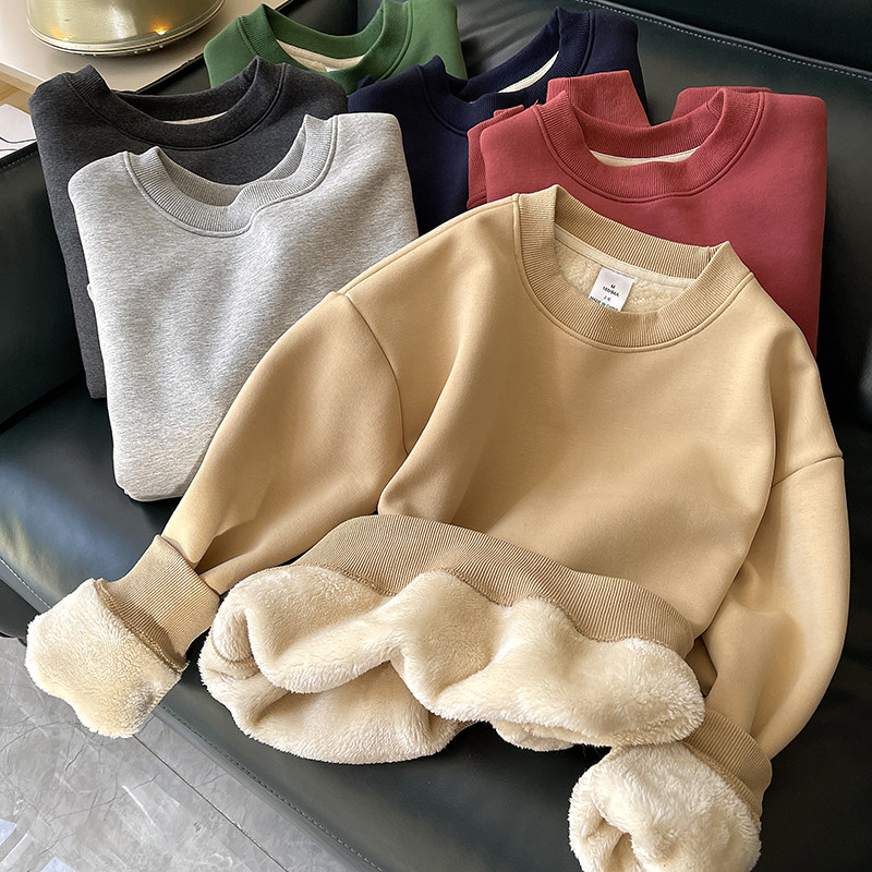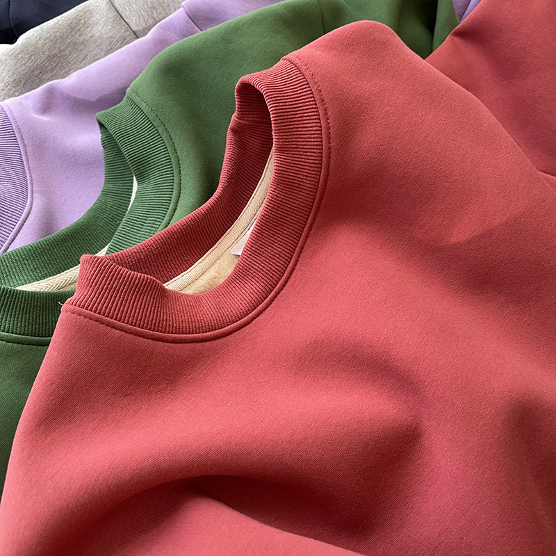 Бархатная демисезонная толстовка с круглым воротником, утепленный удерживающий тепло бархатный лонгслив, в корейском стиле