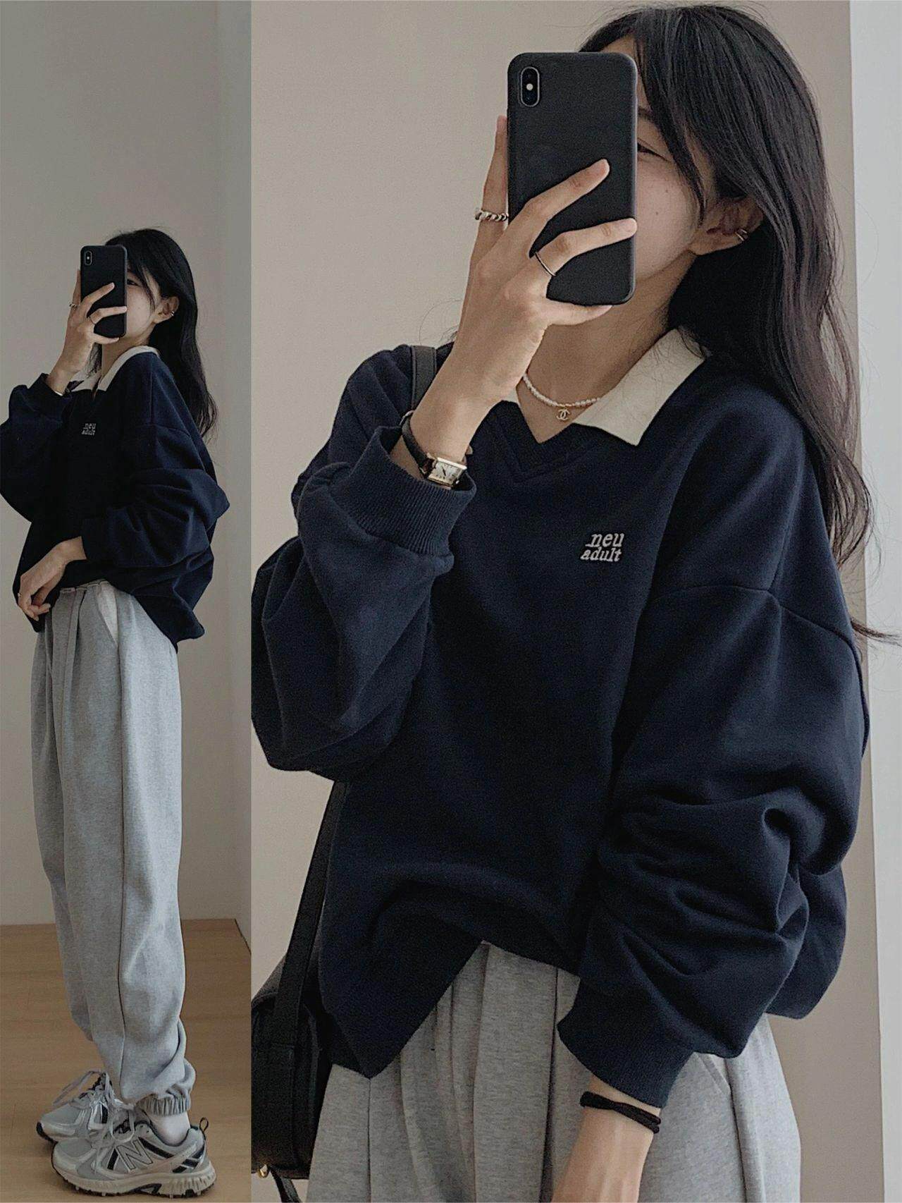 Весенняя летняя толстовка, лонгслив, куртка, воротник поло, в американском стиле, в корейском стиле, подходит для подростков